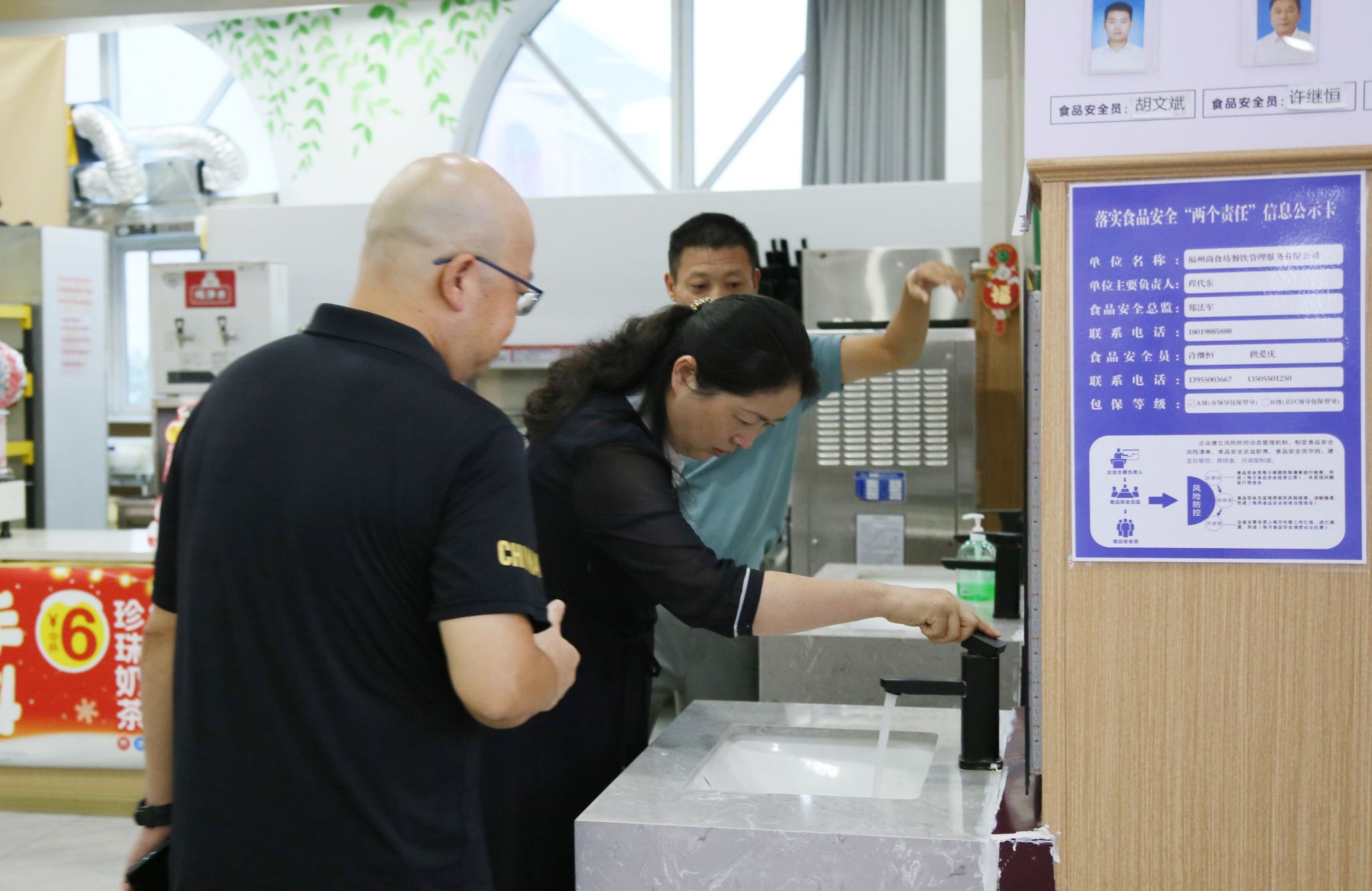 陈飏一行先后深入食堂、超市、快递站、学生公寓、洗浴室等重点区域,实地检查各职能部门安全管理制度的执行、安全设施保障与运行等情况,重点对餐饮后厨安全管理、食品采购与存储、开学快递服务保障等环节进行了细致排查,并详细查看了各处水电、消防设施的运行状态,针对发现的隐患,现场要求相关部门立即组织整改,确保落实到位。