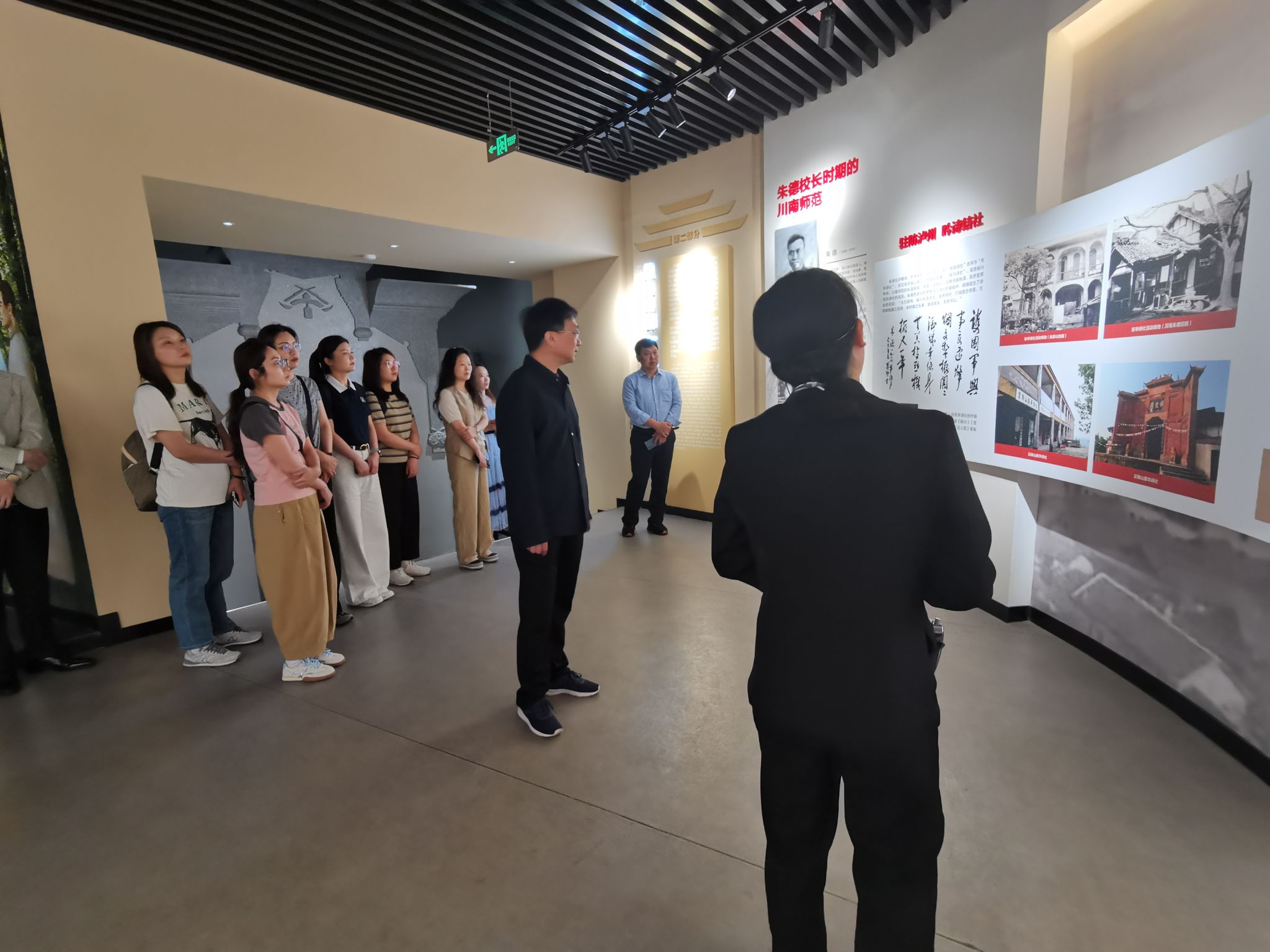 在泸州职业技术学院,双方举行座谈交流会。泸州职业技术学院党委副书记熊剑接待了我校一行,马克思主义学院党支部书记、院长汪华莉详细介绍了学院在课程建设、产教融合、师资队伍培育等方面的特色做法与创新成果,分享了特色马院建设过程中的创新举措和实践探索。双方还就“大思政课建设”“三全育人”等议题展开热烈讨论与交流。随后,考察团实地参观了该校校史馆、经纬家教家风馆、“启明思政”教育中心、经纬广场等大思政课教学场馆,深入了解其在实践教学、文化育人等方面的特色做法,为我校在拓展思政教育阵地、丰富教学形式等方面提供了新思路。