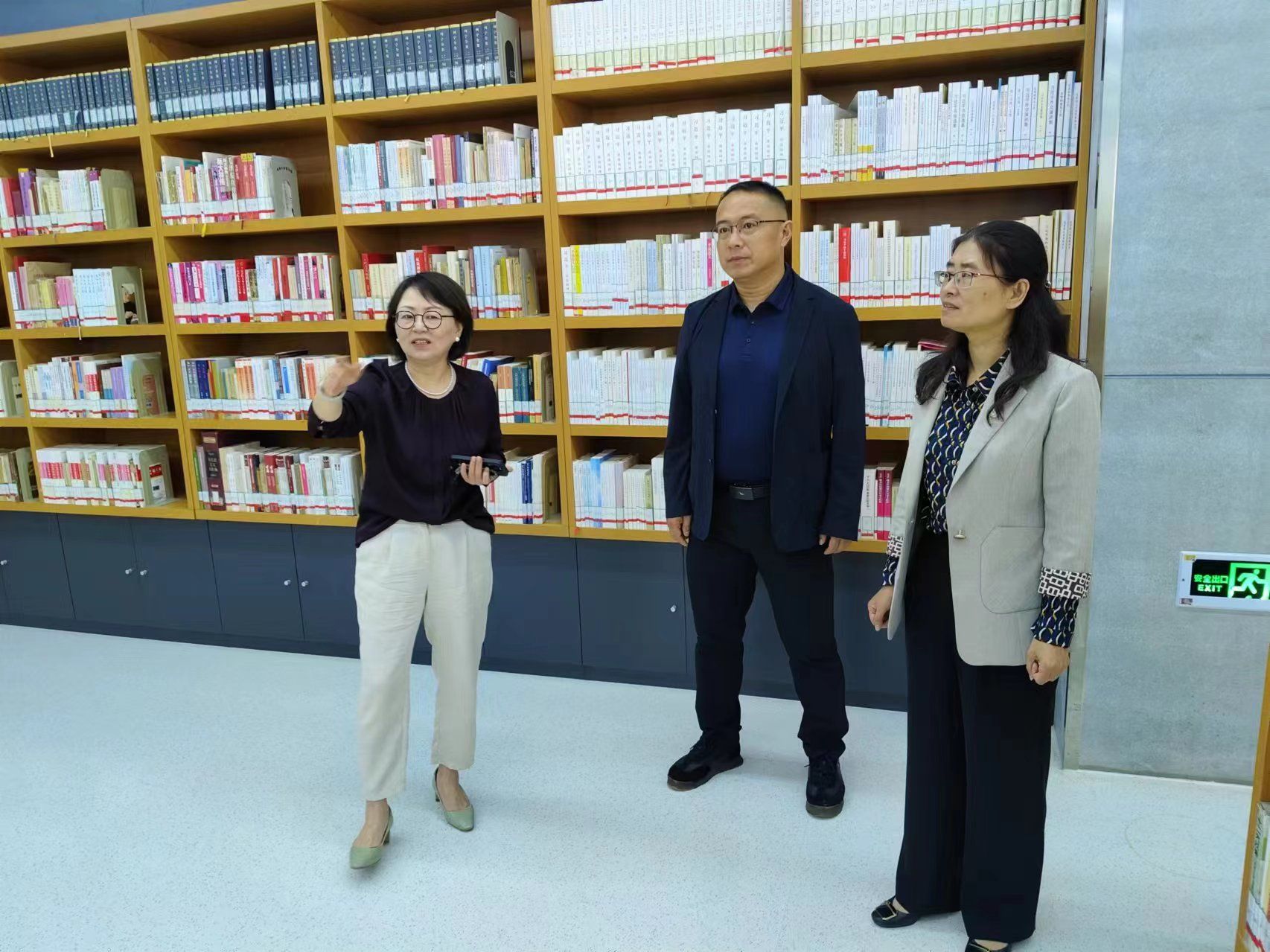 随后,在东南大学图书馆办公室主任谭瑛的陪同下,李超一行先后参观了东南大学图书馆新馆的图书阅览室、学习书房、研讨室、未来学习中心等功能区域,并详细了解空间布局、设施设备配置、服务功能设置等方面的情况。李超对新馆现代化、人性化的设计理念,智能化的管理模式以及丰富多元的服务功能表示高度赞赏,并期待未来两校图书馆能进一步加强交流合作,携手推动图书馆事业高质量发展。