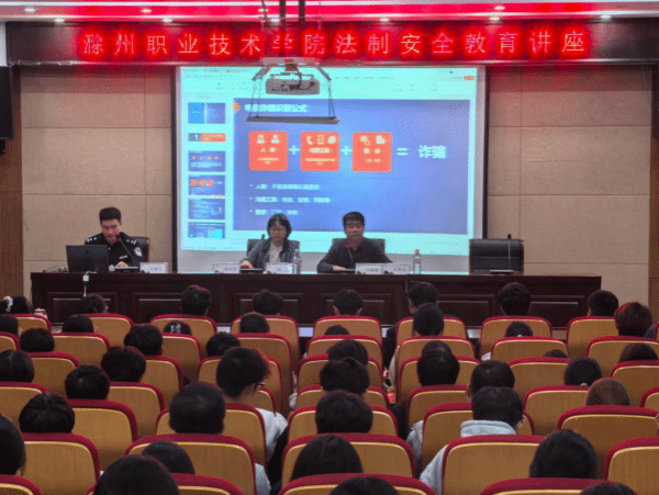 近日,滁州职业技术学院信息工程学院联合龙蟠派出所,以 “反电诈” 为核心开展 “滁州职业技术学院法制安全教育讲座”,学院各班级班干部现场参与,旨在通过骨干力量带动全员提升反电诈意识。