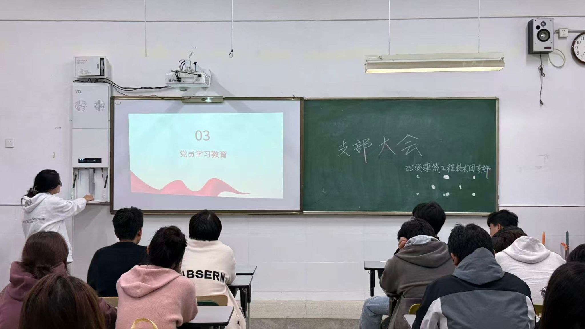 大会在团歌声中拉开帷幕。团支部书记传达上级团组织会议精神,结合建筑工程专业特点,号召团员立足专业学习,在学科竞赛、工程实践中勇挑重担,以“建青春之梦,筑时代之基”的信念投身行业发展。会上,团支部总结了上学期团内工作,从理论学习、志愿服务、专业实践等方面回顾成果,同时明确下一阶段将围绕“红色工地研学”“绿色建筑宣讲”等特色活动,推动团的建设与专业成长深度融合。 团员代表围绕“如何以青春力量赋能建筑行业”展开交流,大家纷纷表示将在BIM技术应用、装配式建筑研究等领域刻苦钻研,积极参与校园基建志愿服务,以实际行动践行“请党放心,强国有我”的青春誓言。