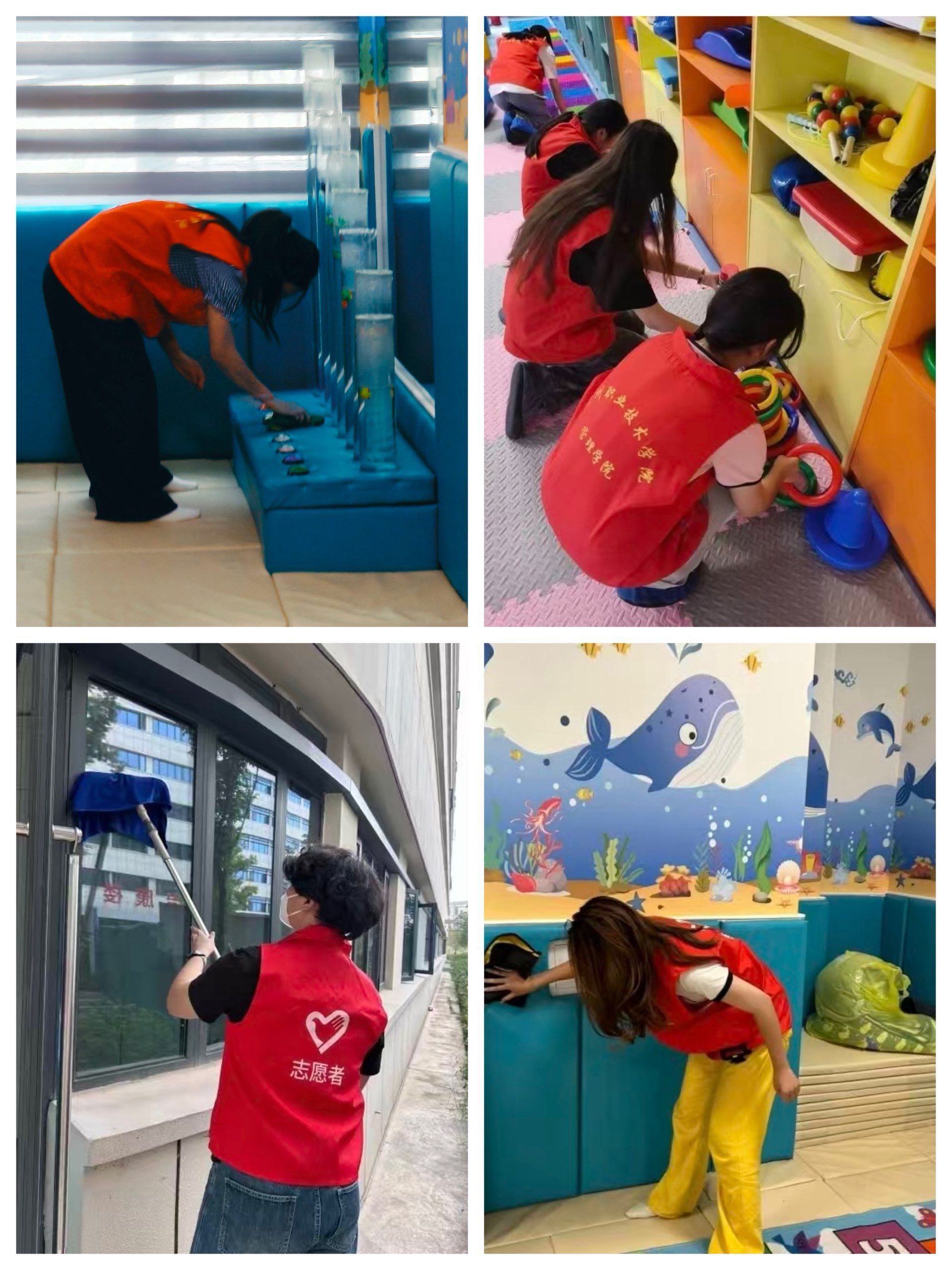 抵达医院后,志愿者们首先以饱满的热情投入到医院环境的清洁与整理工作中。他们细致地打扫活动区域、擦拭公共设施,不放过任何一个卫生死角,致力于为孩子们营造一个更加洁净、舒适、安全的康复环境。志愿者们忙碌的身影和无私奉献的精神,赢得了医护人员的一致赞许。卫生清扫结束后,志愿者们化身“爱心陪伴员”,与孤独症儿童们展开了温馨互动。面对孩子们的沉默与腼腆,志愿者们始终保持耐心与包容,通过搭积木、玩拼图、做小游戏等趣味形式,耐心引导孩子们开口表达、动手参与,用真诚的笑容和温柔的陪伴,逐渐拉近与孩子们的距离,为孩子们的世界注入温暖与光亮。