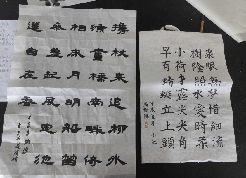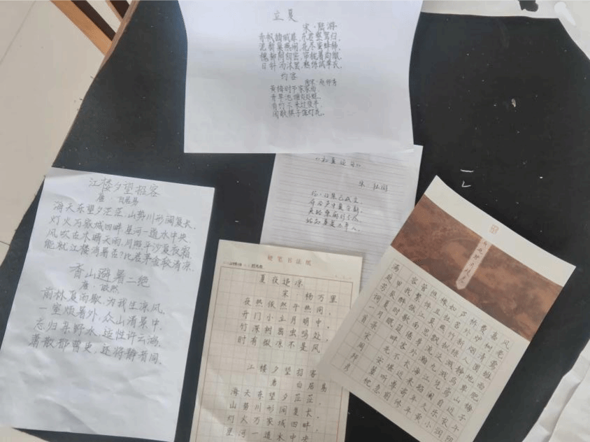 参赛者在限定时间内即兴创作,作品主题围绕“夏日”展开,社员们自行寻找了诗词,经过反复练习和相互交流确定了最后的作品,软笔、硬笔书法作者用隶书、楷书、行楷等书体进行书写。评委从字体、结构、布局和创意四个方面进行评分。通过激烈的比拼,最终从40多幅作品之中选出10幅优秀作品。