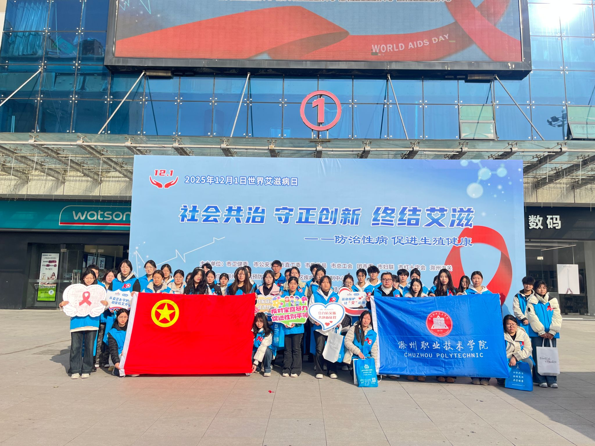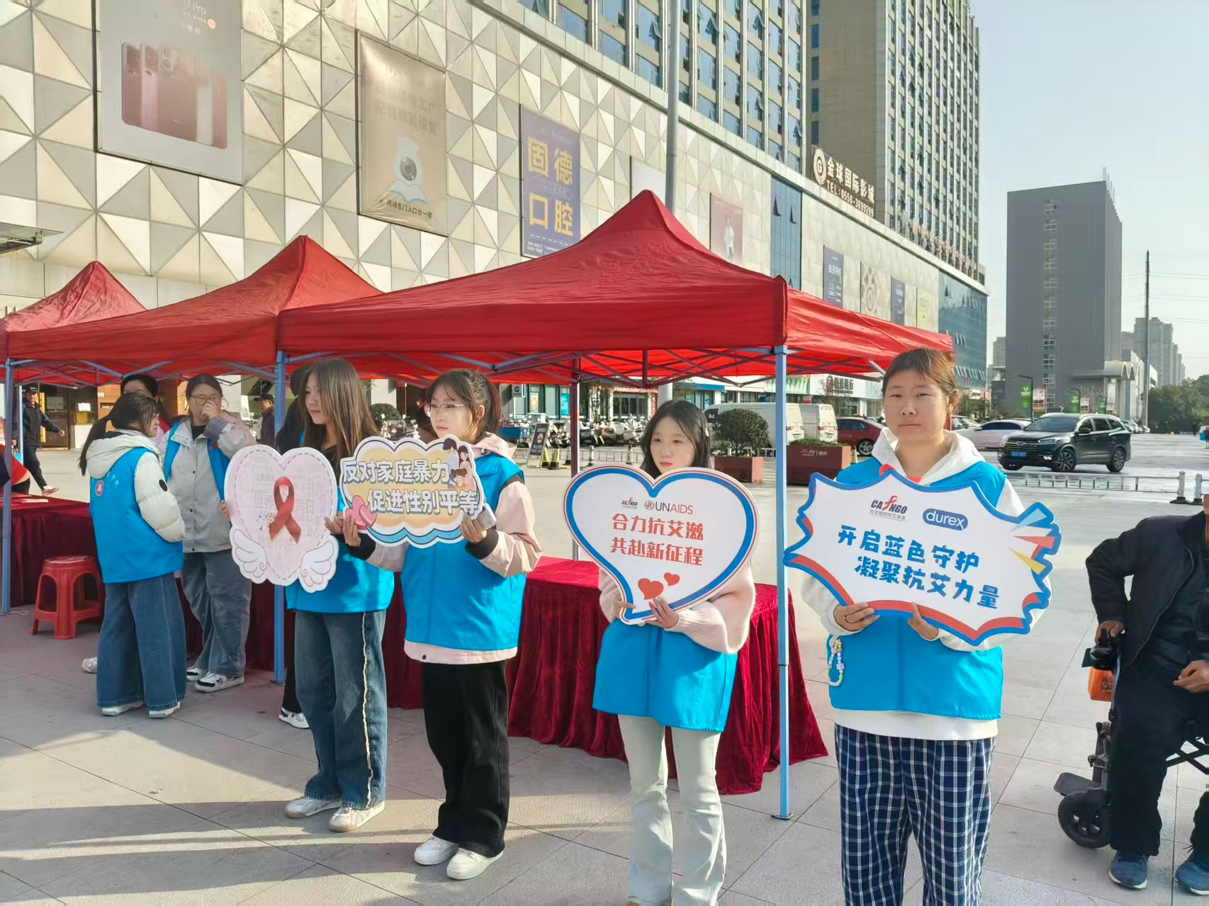 12月1日是第38个“世界艾滋病日”,滁州市疾控中心在玖玖广场举办主题宣传活动,滁州职业技术学院小青亭志愿服务队50名志愿者踊跃参与,以青春力量筑牢防艾防线。