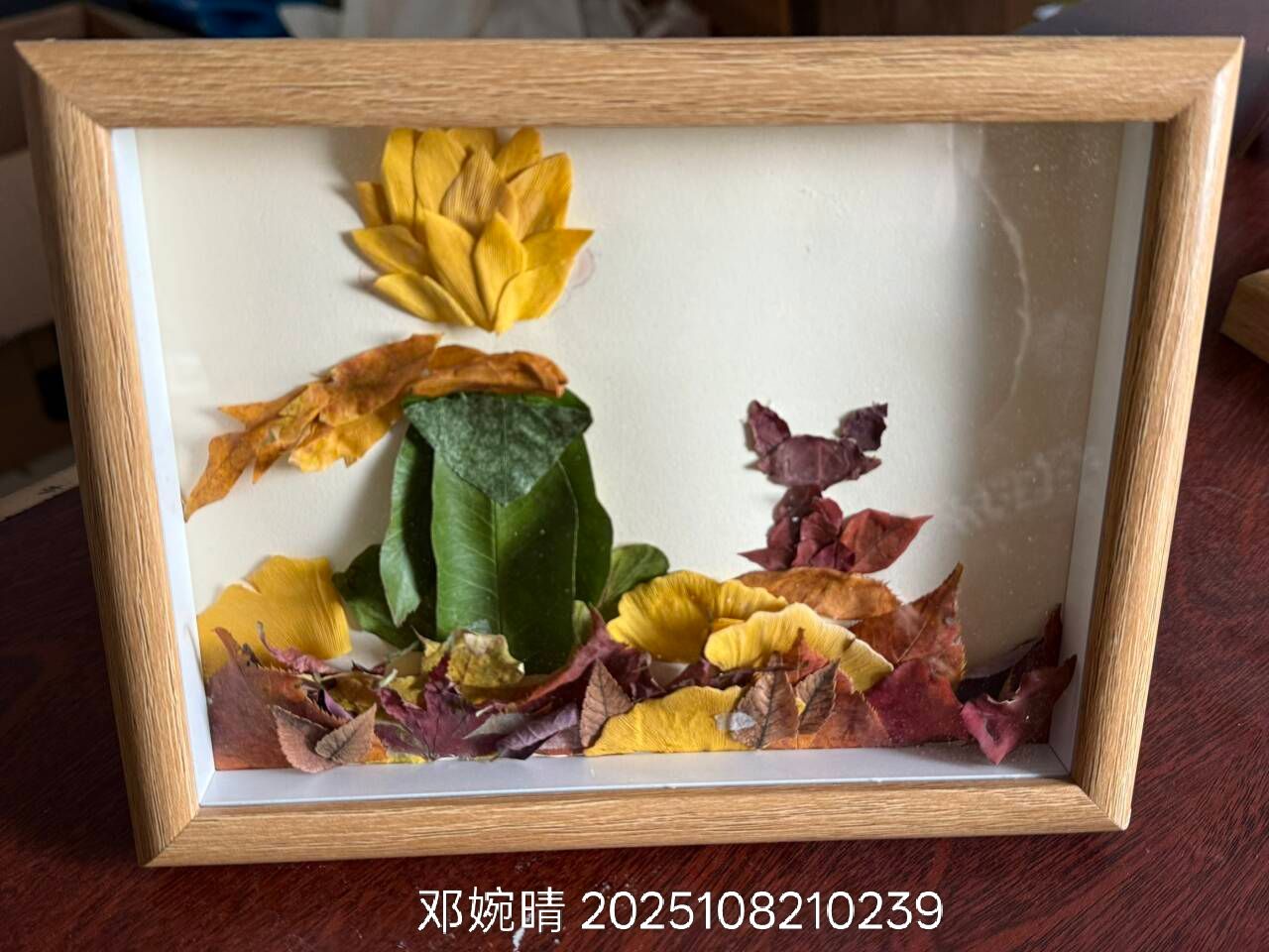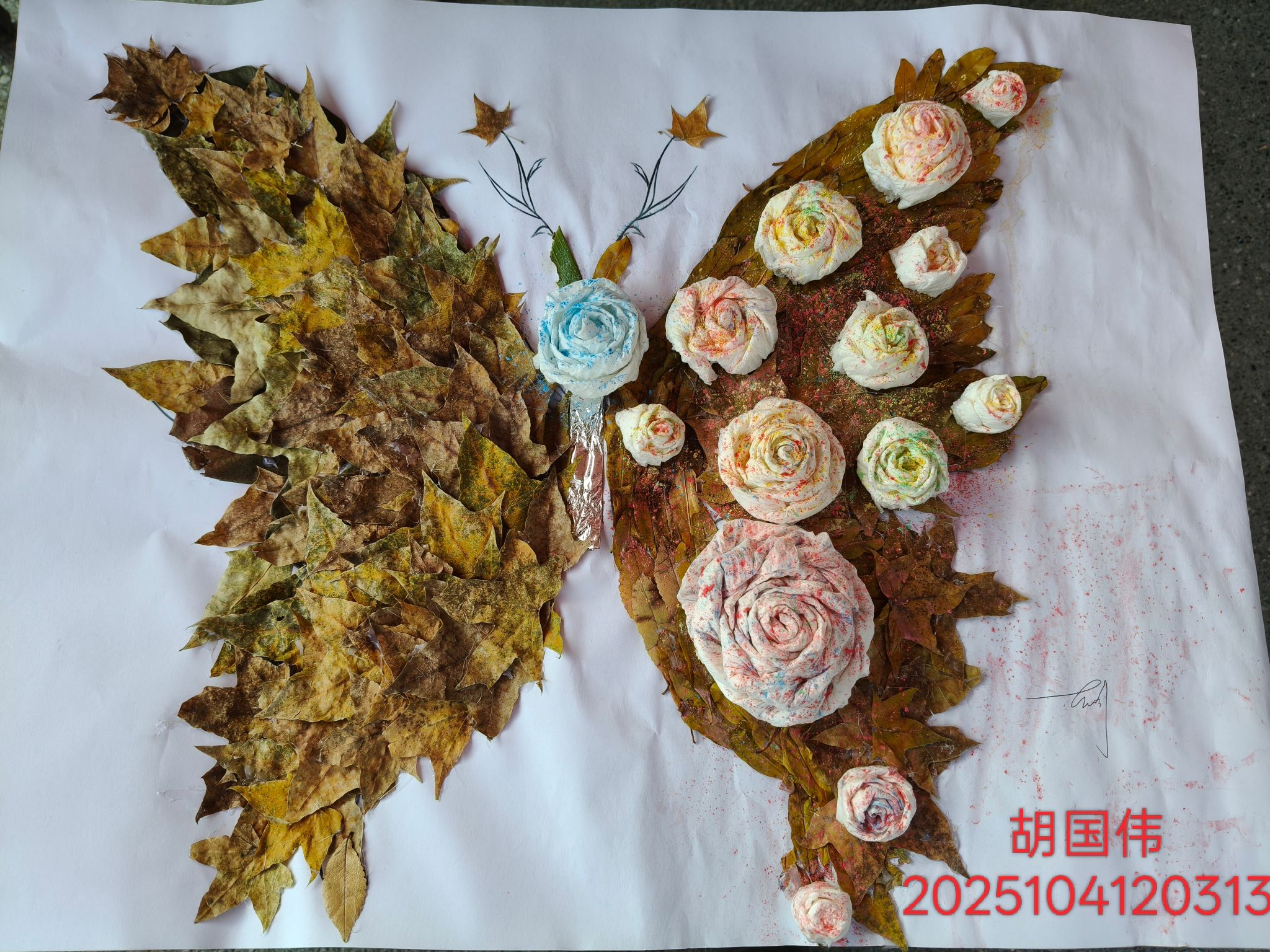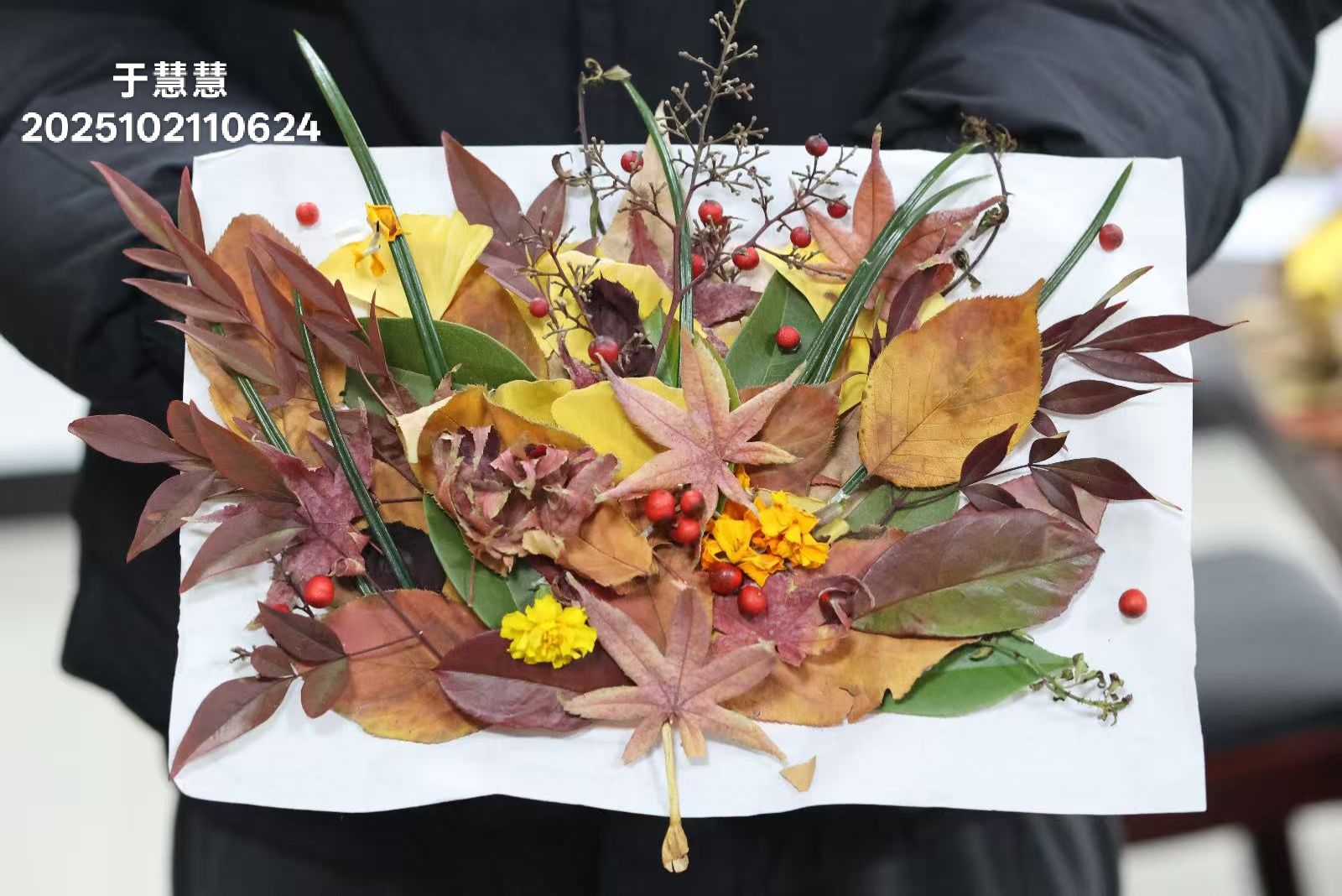 活动以秋叶、秋枝为自然基底,搭配彩纸、胶水等创意工具,鼓励参与者用巧思定格校园秋韵。近500名同学领取物料、大胆创作,将普通的秋叶秋枝转化为精美绝伦的画作与立体摆件,每一件作品都饱含对自然之美的感知、对校园生活的热爱。经过层层筛选,谢龙飞、李娟等40名同学的作品创意独特、意境优美,充分展现了对秋日之美的细腻感知与艺术表达。