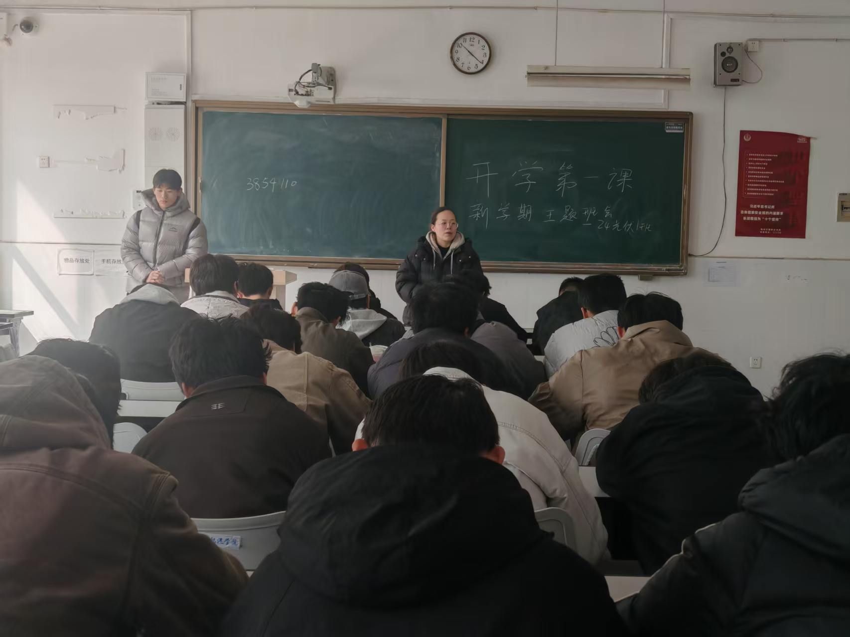 班会上,各辅导员首先对上一学期的期末考试成绩进行了全面细致的分析。通过数据对比和个案剖析,既肯定了同学们在上学期取得的进步,也指出了部分科目存在的短板。老师们引导同学们正视差距,制定切实可行的新学期学习计划,鼓励大家端正态度,查漏补缺,力争学业成绩再上新台阶。此外,优良学风是治学之本,各班重点重申了课堂纪律与行为规范,带领学生深入学习了“校园文明16条”,并对新学期的“6S”寝室创建工作进行了动员部署,旨在共同打造积极向上、文明和谐的校园环境。最后,各班级围绕消防安全、交通安全、网络安全、防范电信诈骗等方面进行了深入浅出地讲解,特别对宿舍用电安全和春季传染病预防进行了重点强调,提醒同学们时刻保持警惕,增强自我保护意识,切实维护自身生命财产安全和校园稳定。