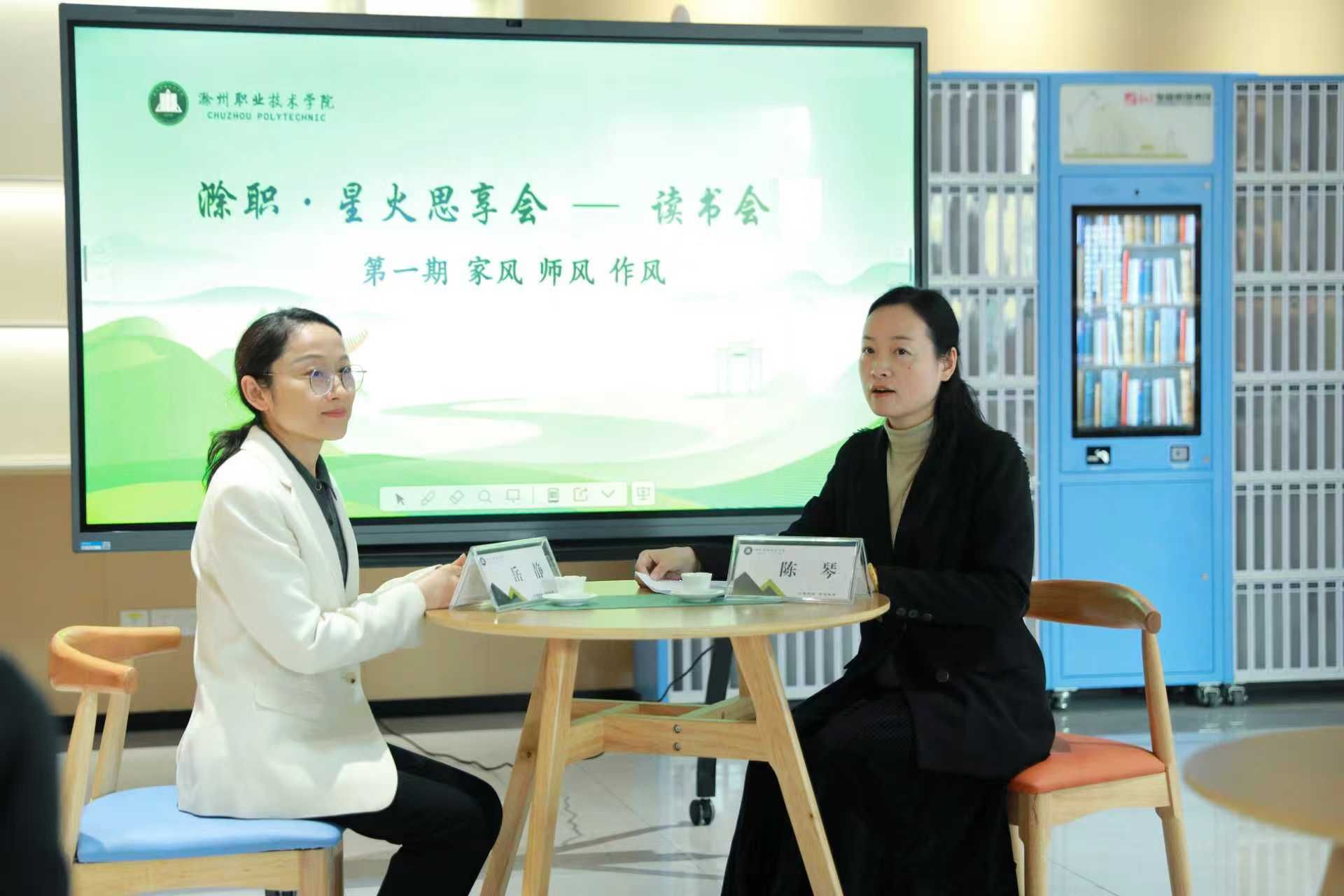 为弘扬中华优秀传统文化,引导师生在阅读中汲取智慧、涵养优良家风、塑造高尚师德、锤炼务实作风,2025年11月14日下午,由组织人事处、校妇联、宣传统战部、校纪委、图书馆、校工会等部门联合主办的“传家风塑师风正作风 品书香守初心育桃李”主题读书会在“一站式”学生社区综合服务中心一楼悦享书屋举行。各党总支、直属党支部推荐的教职工代表及同学代表齐聚一堂,在墨香氤氲中交流感悟,在思想碰撞中凝聚共识。