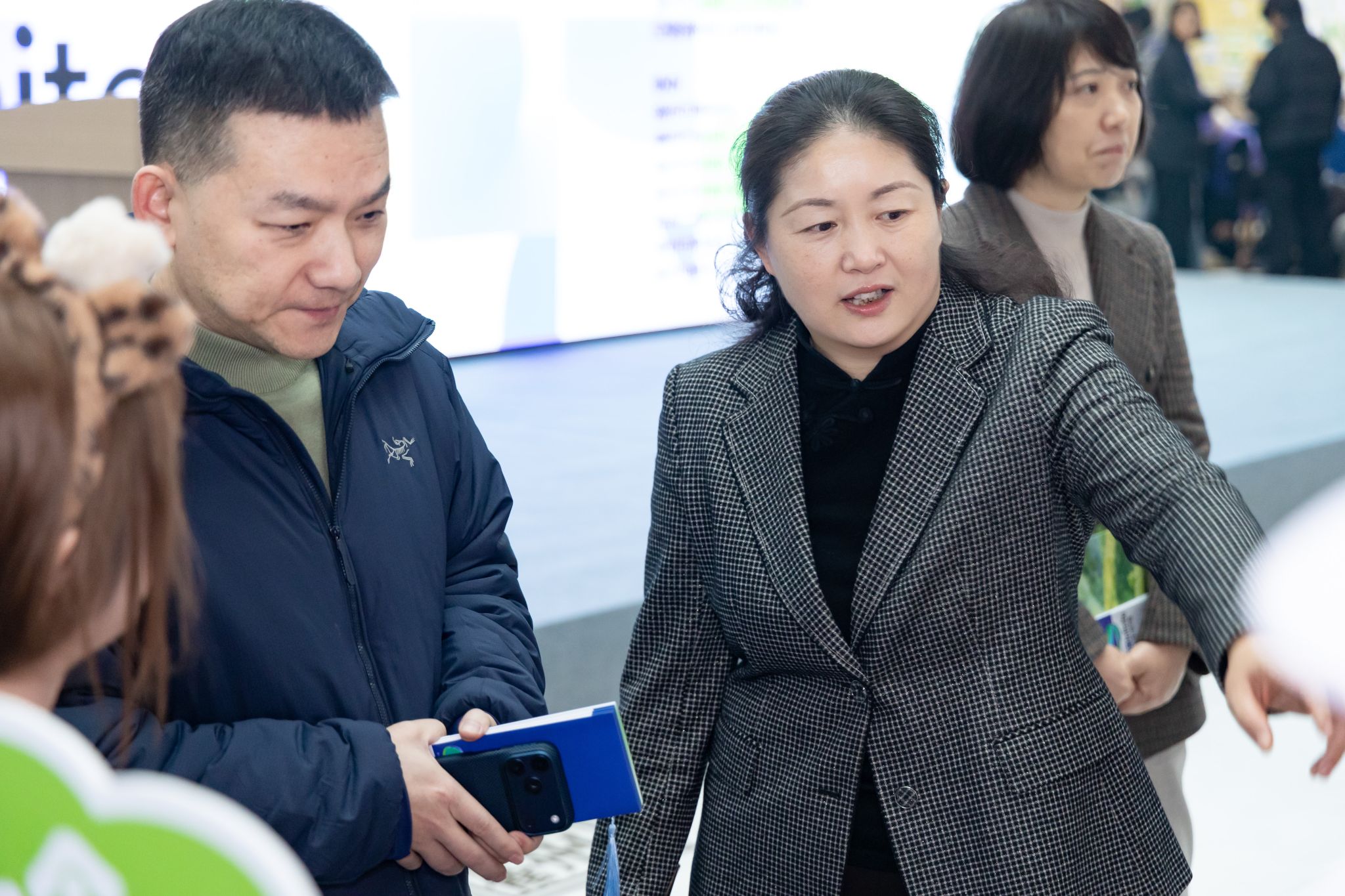 期间,滁州职业技术学院党委副书记、校长许雪峰教授到场观展指导,同与会领导漫步展厅,参观各展位,悉心聆听作品创意,与学生亲切交流,并给出建议和肯定。