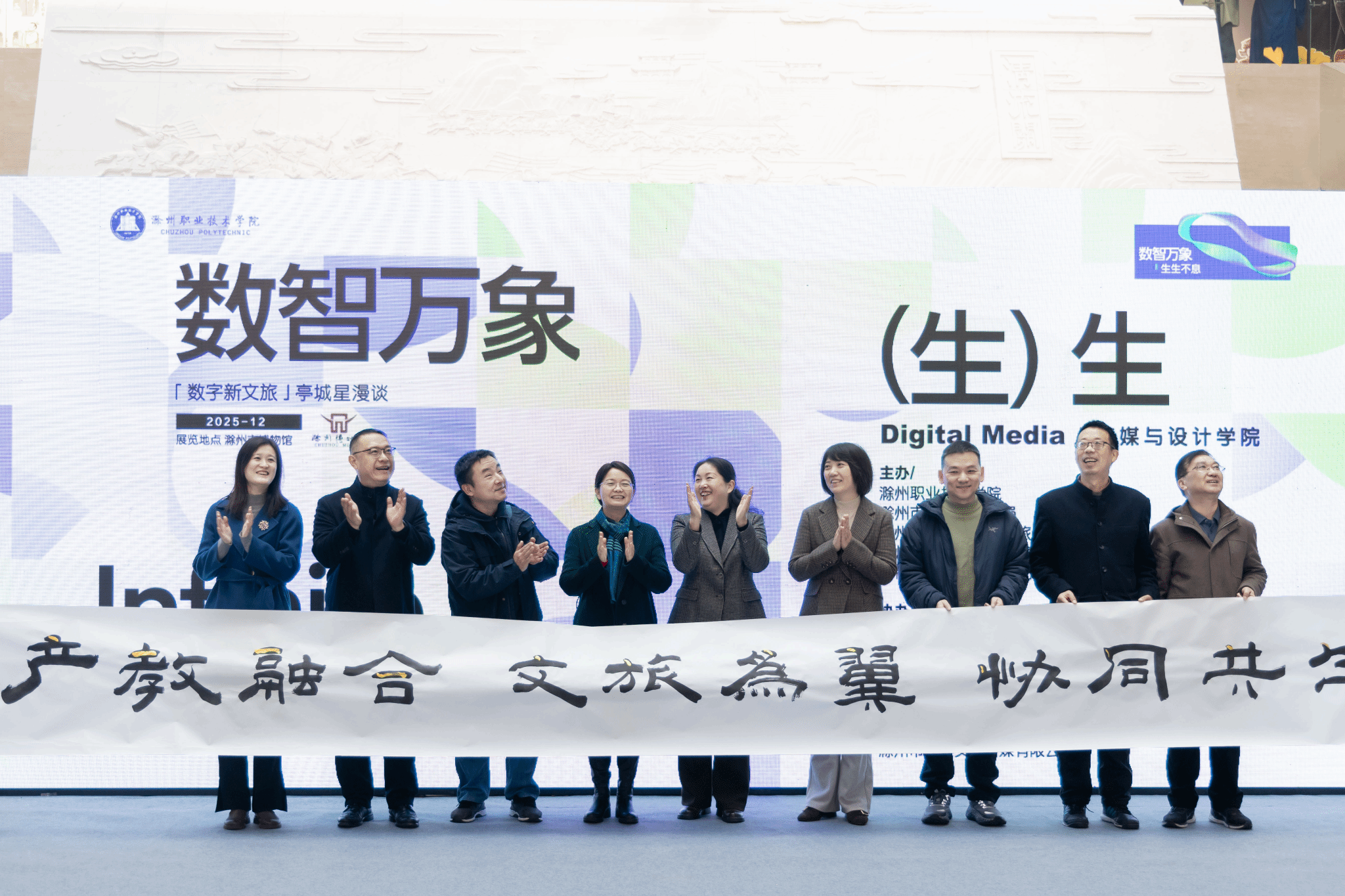 12月20日上午,“数智万象·生生不息”滁州职业技术学院传媒与设计学院2026届毕业设计作品展在滁州市博物馆开幕。本次作品展聚焦“城市推广”“乡村振兴”“创新创业”“智能制造”“华服设计”等方向,展出400余名毕业生的130余组作品,作品涵盖沉浸式文旅、数字非遗、智慧乡村、交互绘本、智能家居和服饰文化等多个领域,集中呈现学院在数字化领域的教学成果与产教融合实践。