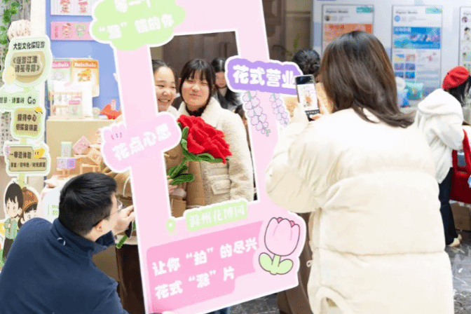同时,学校管理学院、食品与环境工程学院的学生们还带来了茶艺展示、文创糕点品尝、花艺体验等环节;商学院学子助力展览全程直播,使展览真正实现从内容到形式全方位的“数智赋能”。