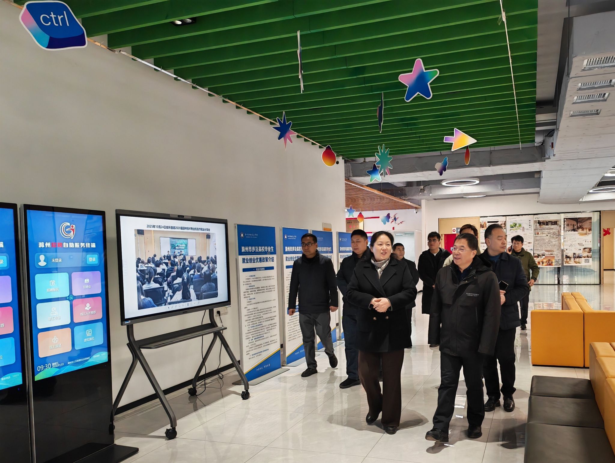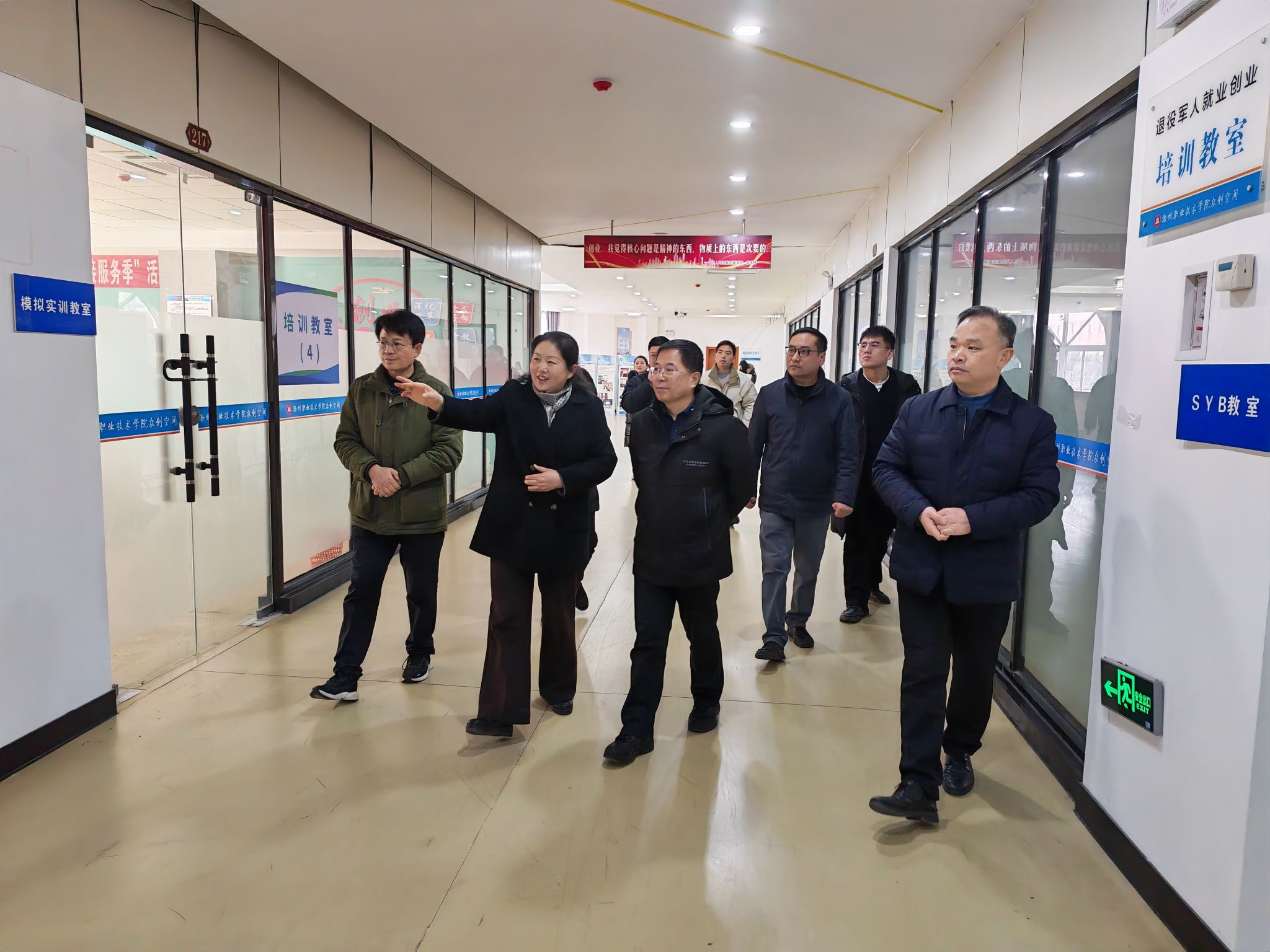 1月23日上午,人社部公共就业服务能力提升示范项目评估验收组莅临我校,就“滁州市公共就业服务能力提升示范项目”建设成效进行评估验收。校党委书记陈飏,党委委员、副校长苏有良热情接待验收组,招生就业处、实验实训中心等相关部门负责人陪同考察。