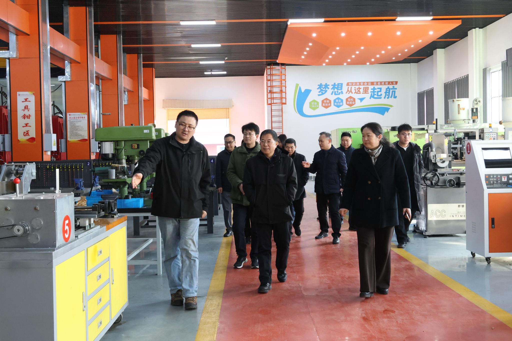 专家组实地走访了“一站式”学生社区就业服务站、创新创业孵化基地及智能制造实训基地,对各基地的功能布局、设施配备及其与产业需求的衔接情况给予高度评价。专家们还与现场工作人员围绕服务流程优化、资源整合效率等议题进行了深入交流。此外,验收组认真查阅了相关工作台账与数据资料,全面了解项目实施以来学校在就业服务体系建设、创新创业教育推进、实训资源共享等方面取得的进展。