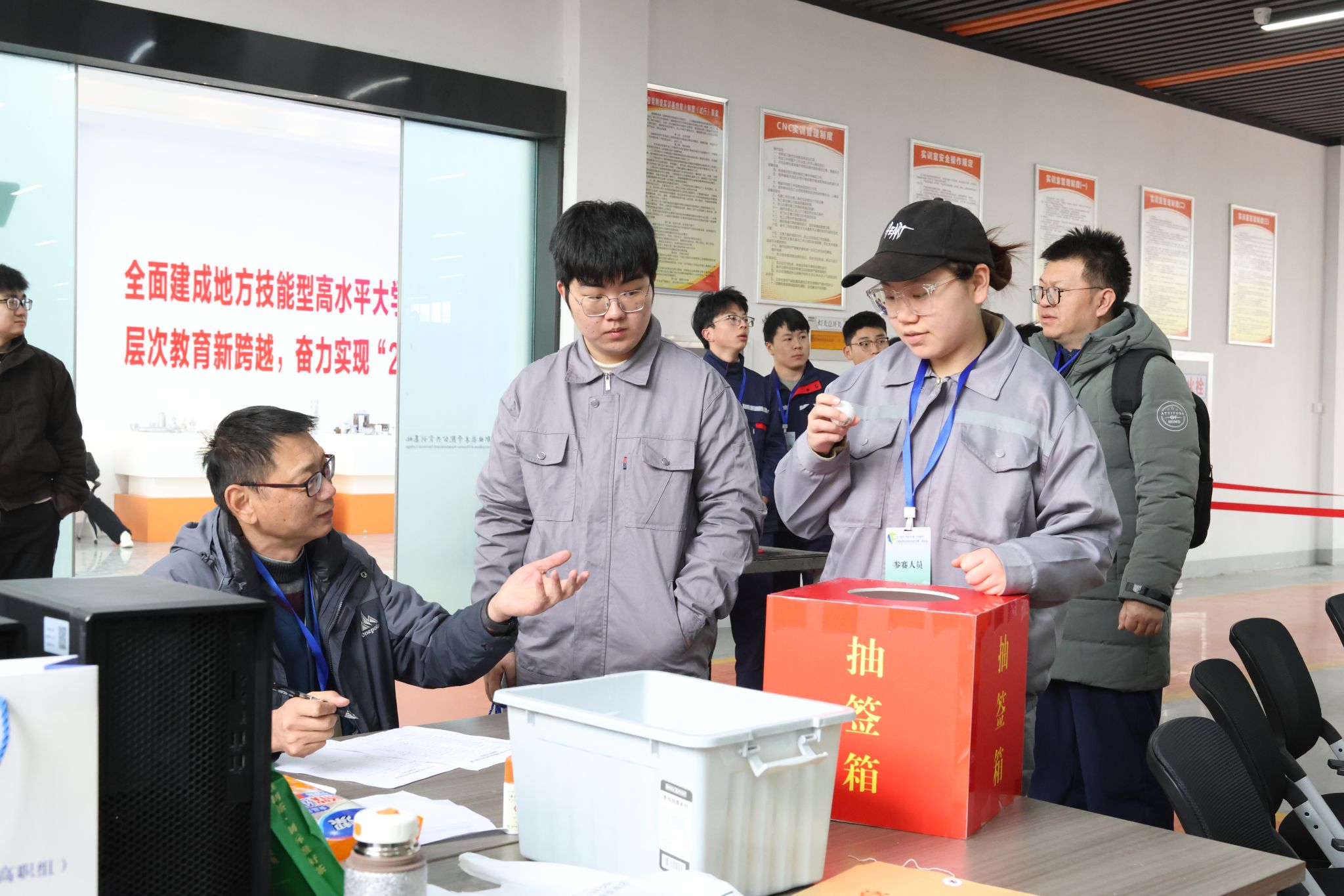 赛前,校领导深入赛场一线巡查指导,与工作人员亲切交流,详细询问各环节落实情况,全力保障赛事平稳有序开展;选手们在工作人员的有序引导下进入数控技术创新实训室,提前一天熟悉赛场布局、设备性能与操作规范,为正式竞赛做好充分准备;大赛组委会组织召开领队会,共同学习竞赛规则与纪律要求,裁判长、监督组长承诺将严格恪守赛事规定,自觉维护公平公正的竞赛环境;现场通过抽签方式确定竞赛当日场次顺序,全程公开透明。