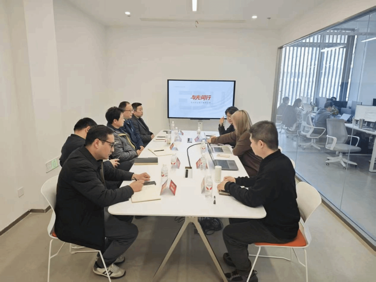 随后,苏有良一行来到杭州与光同尘文化科技有限公司,在企业校企合作部门负责人卢静佳的陪同下,苏有良一行参观了公司的工作环境,详细了解了企业的发展历程、业务板块、核心技术以及行业最新趋势。座谈会上,双方围绕人工智能AIGC在数字媒体、动画制作等专业领域的人才培养、课程共建、实习实训基地建设等方面进行了深入探讨,并就如何将企业的真实项目引入教学,实现学生能力与企业需求的无缝对接交换了意见。