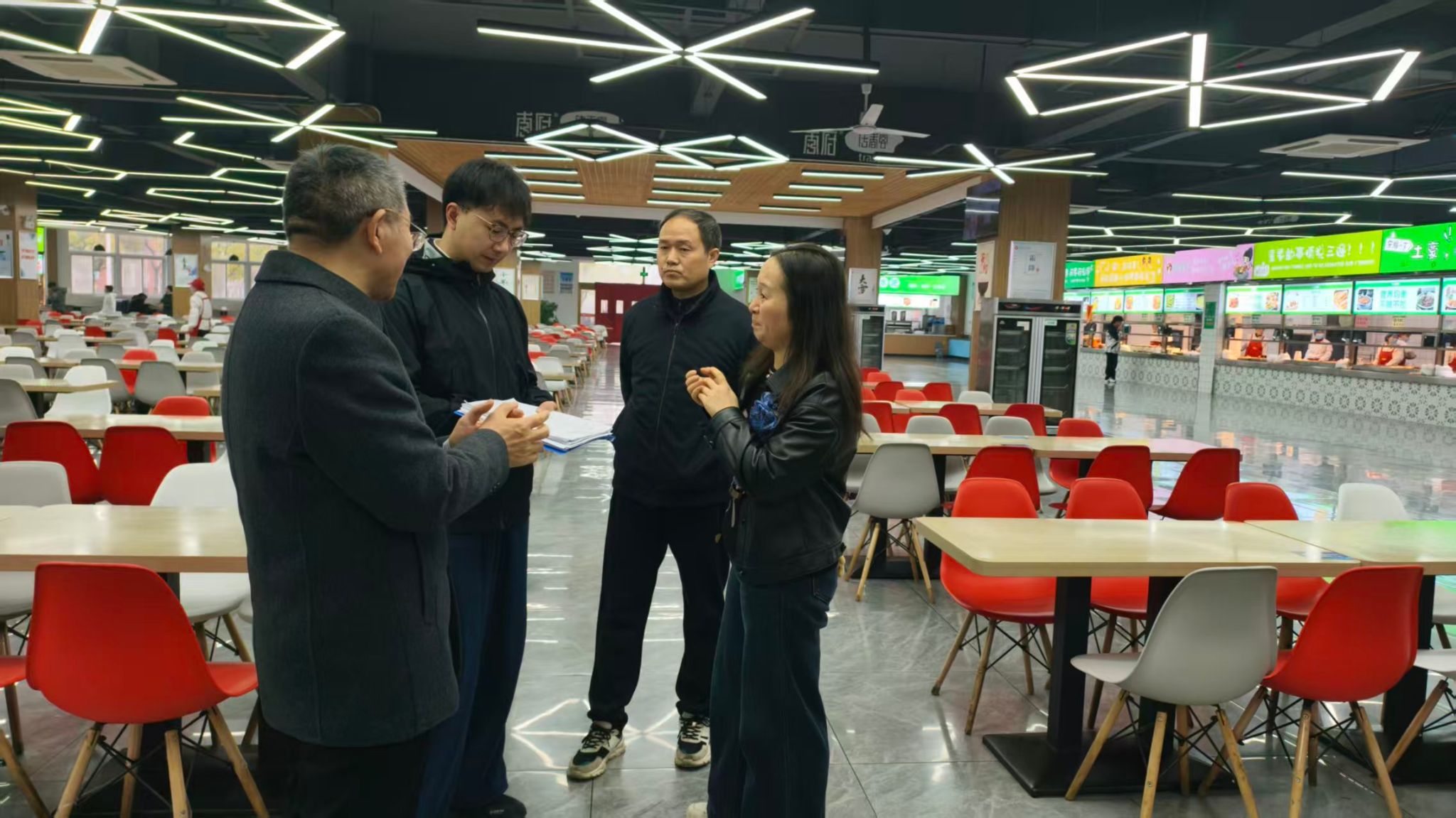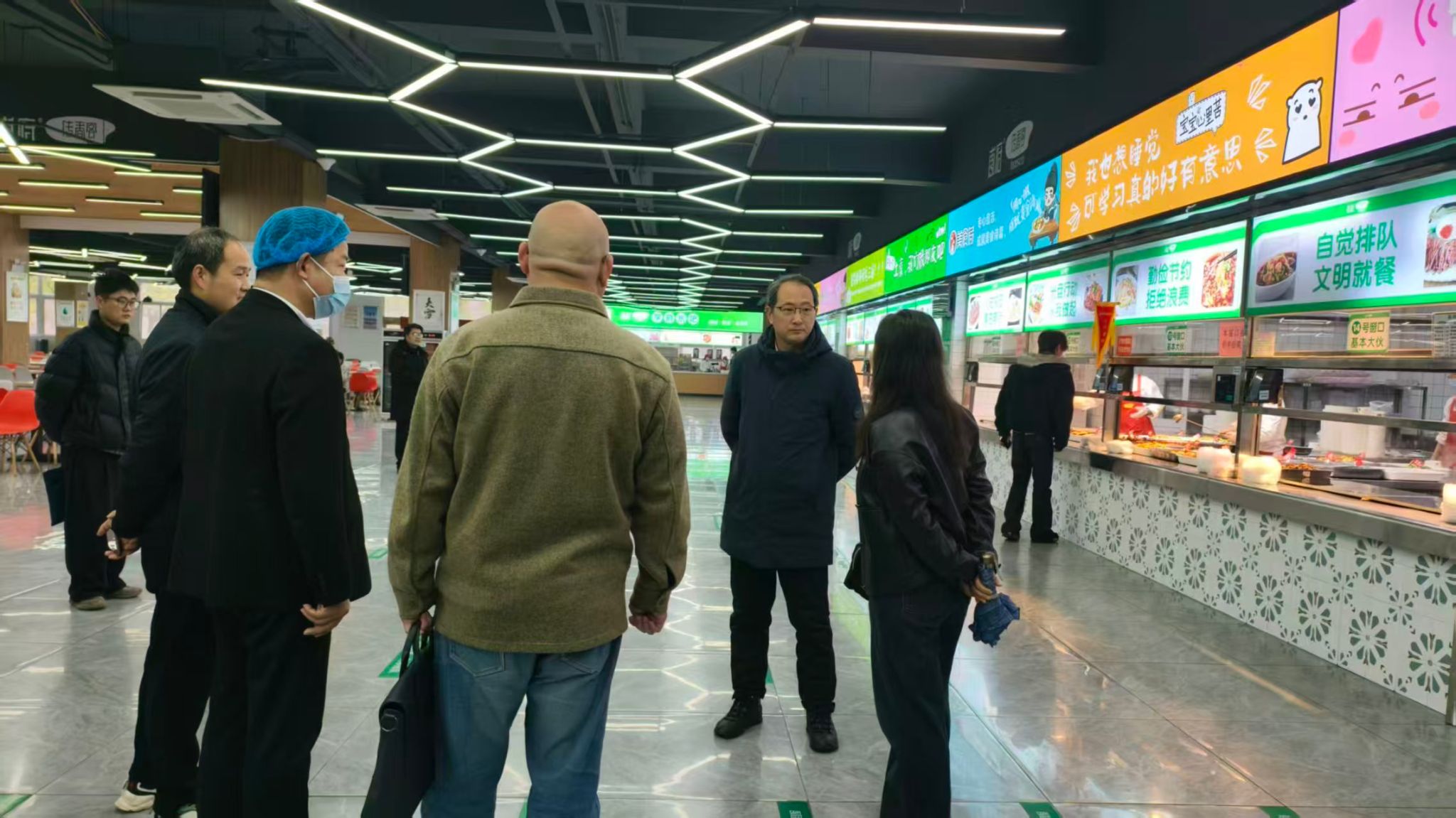 许雪峰代表学校向检查组的到来表示热烈的欢迎和诚挚的感谢。他表示此次联合检查,将有效消除我校食品安全隐患,进一步压实校园食品安全主体责任,强化校园食品安全全链条监管。
