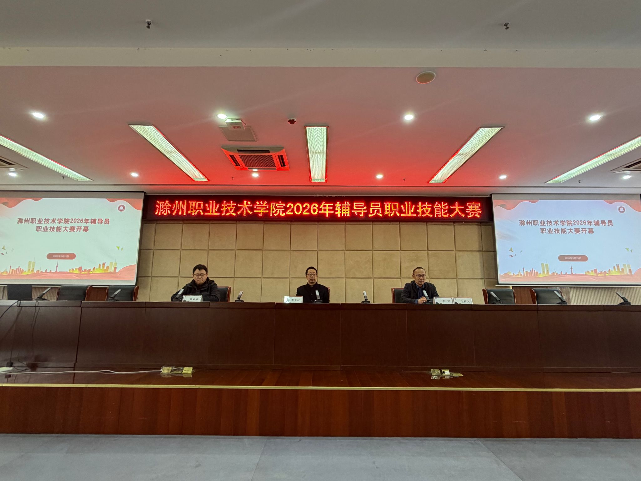 为进一步推进辅导员队伍专业化、职业化、专家化建设,我校2026年辅导员素质能力比赛于3月25日下午在综合楼502报告厅拉开帷幕。校党委委员、校工会主席李平权出席开幕式。学生工作处副处长朱亚春,各院部党总支副书记,全体专职辅导员,及相关工作人员参加开幕式。学生工作处处长张军主持开幕式。