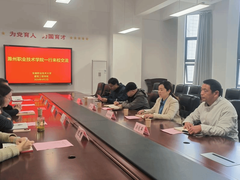 为深入学习和借鉴本科层次职业教育先进办学经验,推动建筑工程类专业转型升级与内涵建设提升,深化人才培养方案的动态调整与优化,4月2日,校党委委员、副校长胡凼带队,建筑工程学院党总支书记朱婷婷、副院长朱宝等一行5人,赴安徽职业技术大学开展学习交流。安徽职业技术大学党委委员李荣富,建筑工程学院党总支书记陈传胜、副院长(主持工作)刘茜、副院长李勇等热情接待了我校一行。