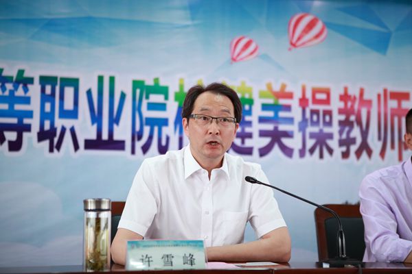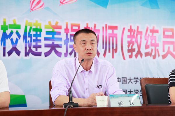开班仪式上,许雪峰发表了热情洋溢的讲话,他对与会的各位领导和朋友表示热烈欢迎,并希望来自祖国四面八方的教育界朋友,通过此次健美操培训架起友谊的桥梁,进一步增强校际之间的交流和学习,共同进步,共同发展。中国大学生体育协会综合项目部管理部副主任张汉先生带来了领导的问候并对所有教练员、学员提出了殷切希望。