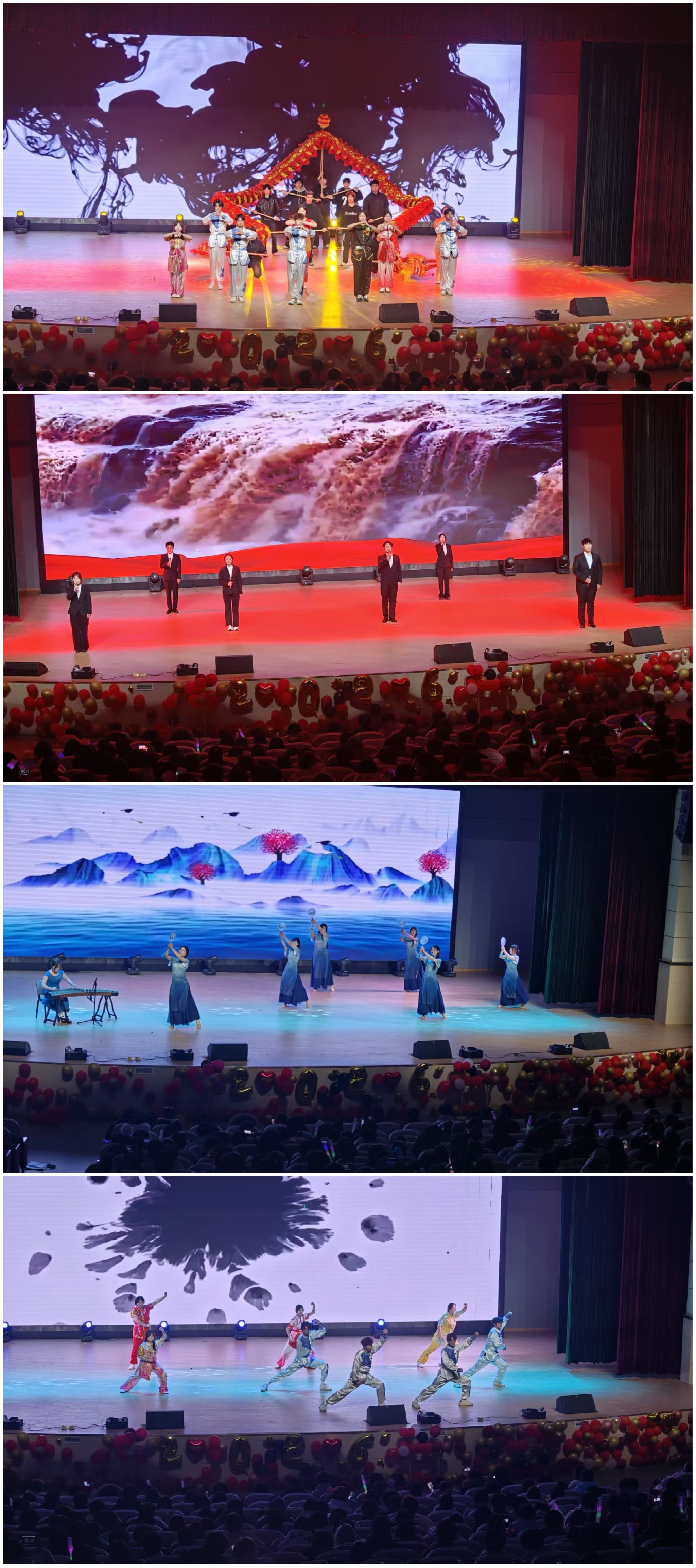 晚会以“金蛇辞岁,骏马骋春”为主题,巧妙分为“灵蛇幻彩,青春律动”“龙马精神,文脉赓续”“骏马骋春,奔赴新程”三大篇章。节目形式多样,内容丰富,既有对中华优秀传统文化的深情致敬,也有对青春活力与时代精神的生动诠释,集中展现了建工学子全面发展的综合素质和昂扬向上的精神风貌。