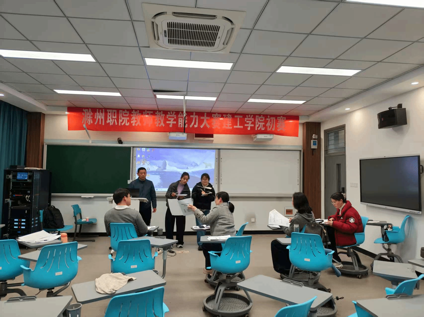 为进一步提升教师教学基本功与信息化教学能力,深化课堂教学改革,推动教学创新与质量提升,3月18日下午,建筑工程学院在致学楼4208智慧教室成功举办学校教师教学能力大赛学院初赛。教务处、建筑工程学院高度重视此次赛事,本次比赛严格按照学校教师教学能力大赛标准组织开展,邀请近年来在省级教师教学能力大赛中斩获优异成绩的平燕、冯环、李西、梁成燕、胡波五位优秀教师担任评委。