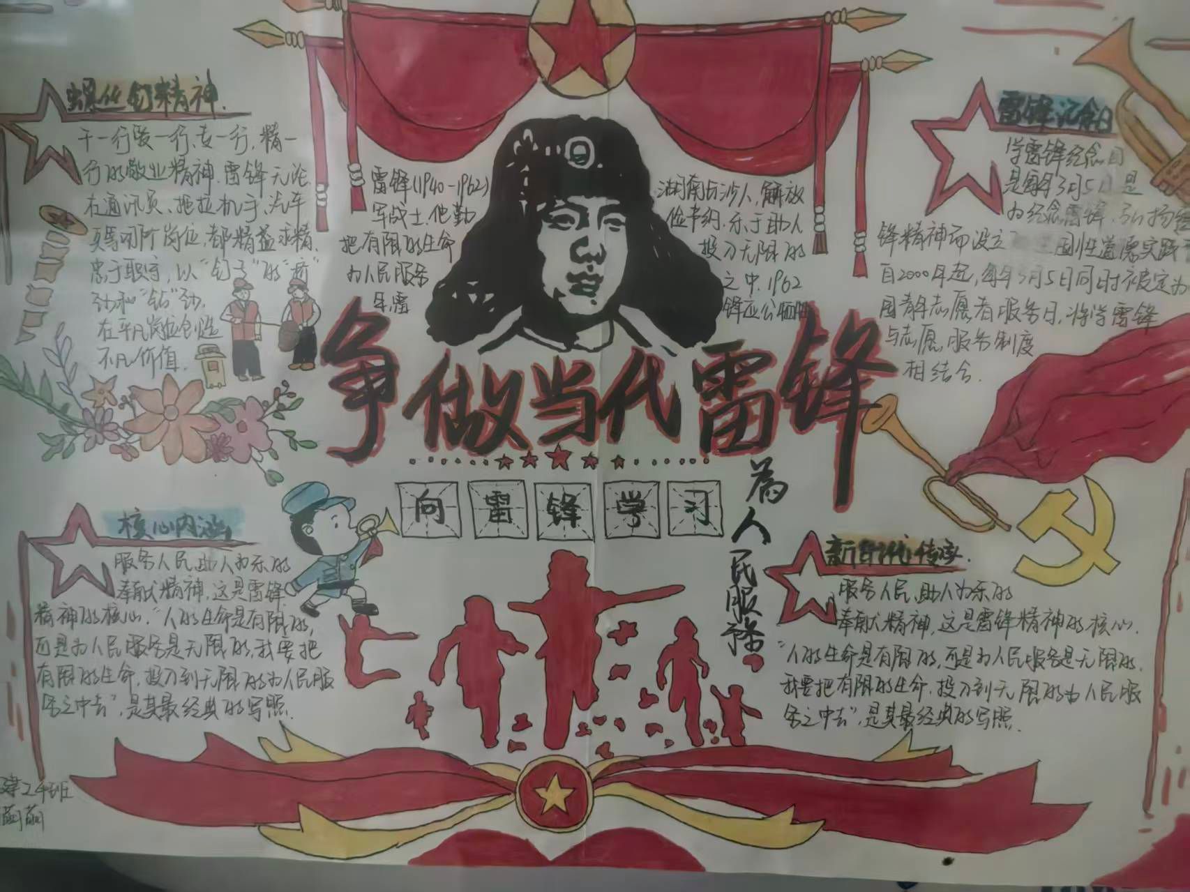为深入传承雷锋精神,培育新时代青年学子的奉献意识与责任担当,推动学雷锋活动常态化、长效化,3月23日,建筑工程学院开展雷锋月主题手抄报黑板报创作活动。