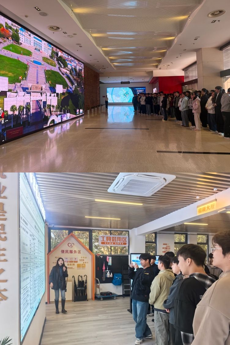 离开企业一线,师生一行走进滁州市规划馆,通过全息投影、数字沙盘等现代化展示手段,系统了解滁州“一核引领、多区联动”的城市空间布局与未来发展蓝图。随后,部分线路学生还前往琅琊就业创业赋能中心,深入了解滁州在人才引进、创新创业等方面的政策与服务,为未来就业创业做好准备。