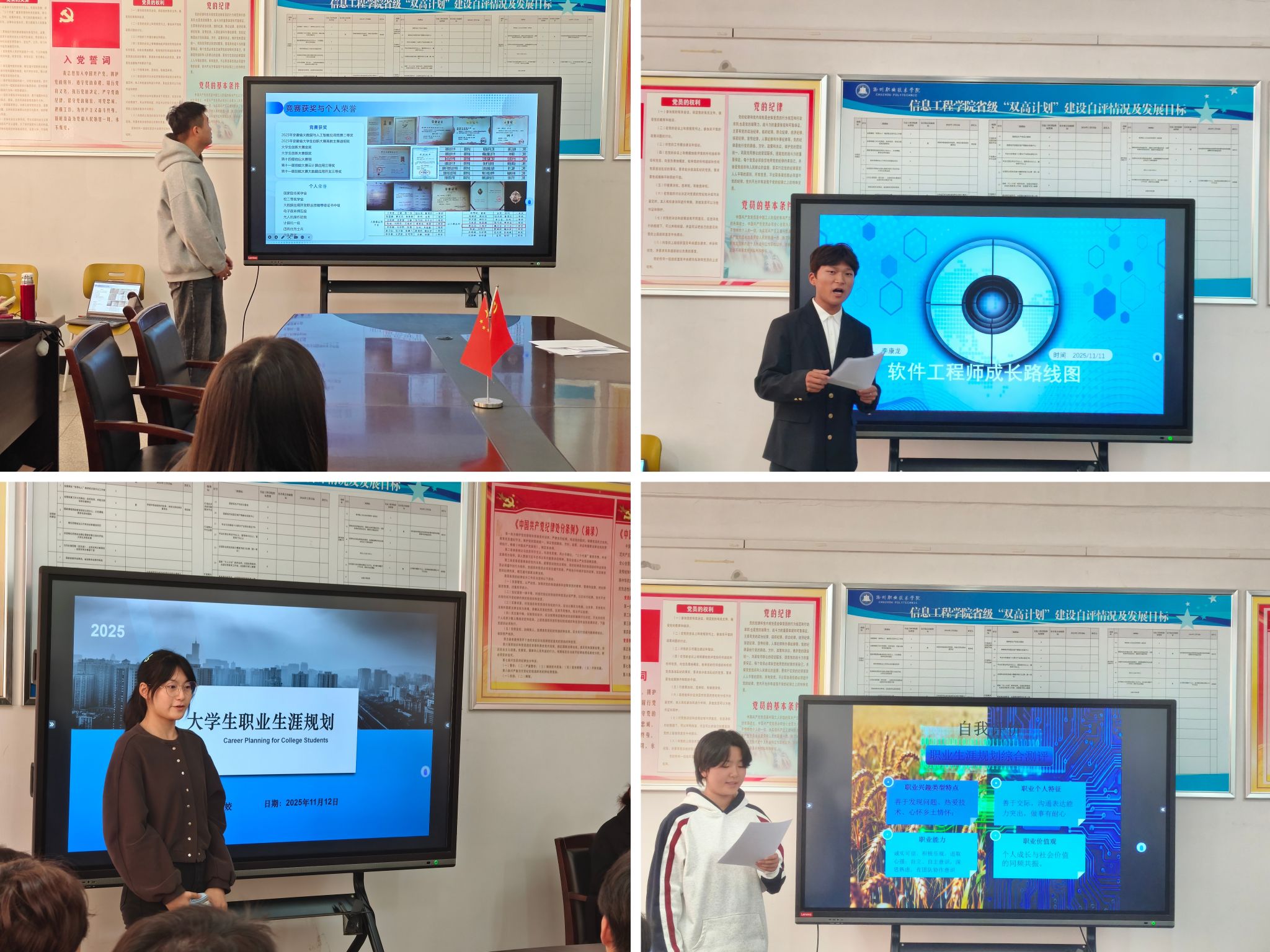11月14日下午,信息工程学院职业规划大赛初赛在2513会议室成功举办。本次比赛旨在引导学生树立正确的成才观、就业观,科学规划职业生涯,共有19名同学同台竞技。