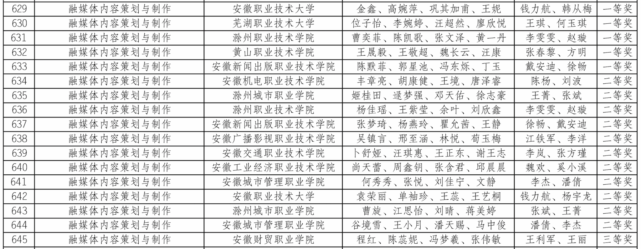 3月3日,由安徽省教育厅、安徽省工业和信息化厅、安徽省人力资源和社会保障厅、安徽省残疾人联合会主办的2025-2026年度安徽省职业院校技能大赛“融媒体内容策划与制作”赛项公布比赛获奖结果。我校选派的两支参赛队伍凭借扎实的专业功底、出色的临场表现和默契的团队协作,与全省各职业院校的212名选手同台竞技,经过激烈角逐,分别荣获一等奖和二等奖的优异成绩。