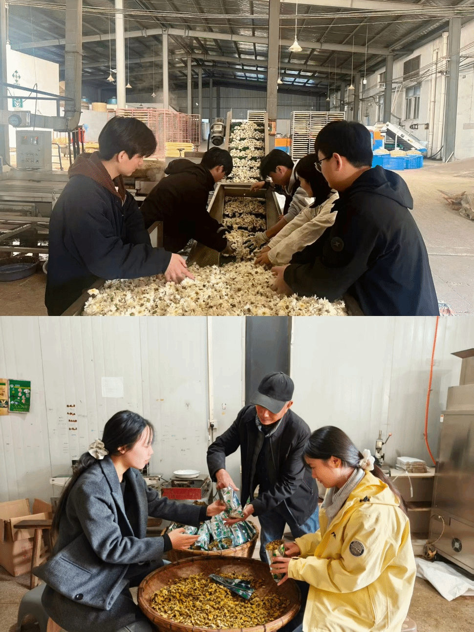 在茶厂老师傅的悉心指导下,同学们首先接触了滁菊加工的关键环节——杀青。大家凝神观察,认真学习如何通过精准控制温度来锁住滁菊的天然色泽与独特香气。在确保安全的前提下,同学们亲手操作,感受叶片在高温下的细微变化,理解了“杀青”对于奠定产品品质的决定性作用。随后,在热风循环、脱水烘干等工序中,同学们分工协作,精心调整设备参数,观察热风如何均匀穿透花层,亲眼见证湿软的菊花在匠心呵护下变得干爽挺括、持久留香。整个过程中,同学们不仅掌握了机械的操作要领,更对“慢工出细活”“精益求精”的工匠精神有了具象而深刻的认知。