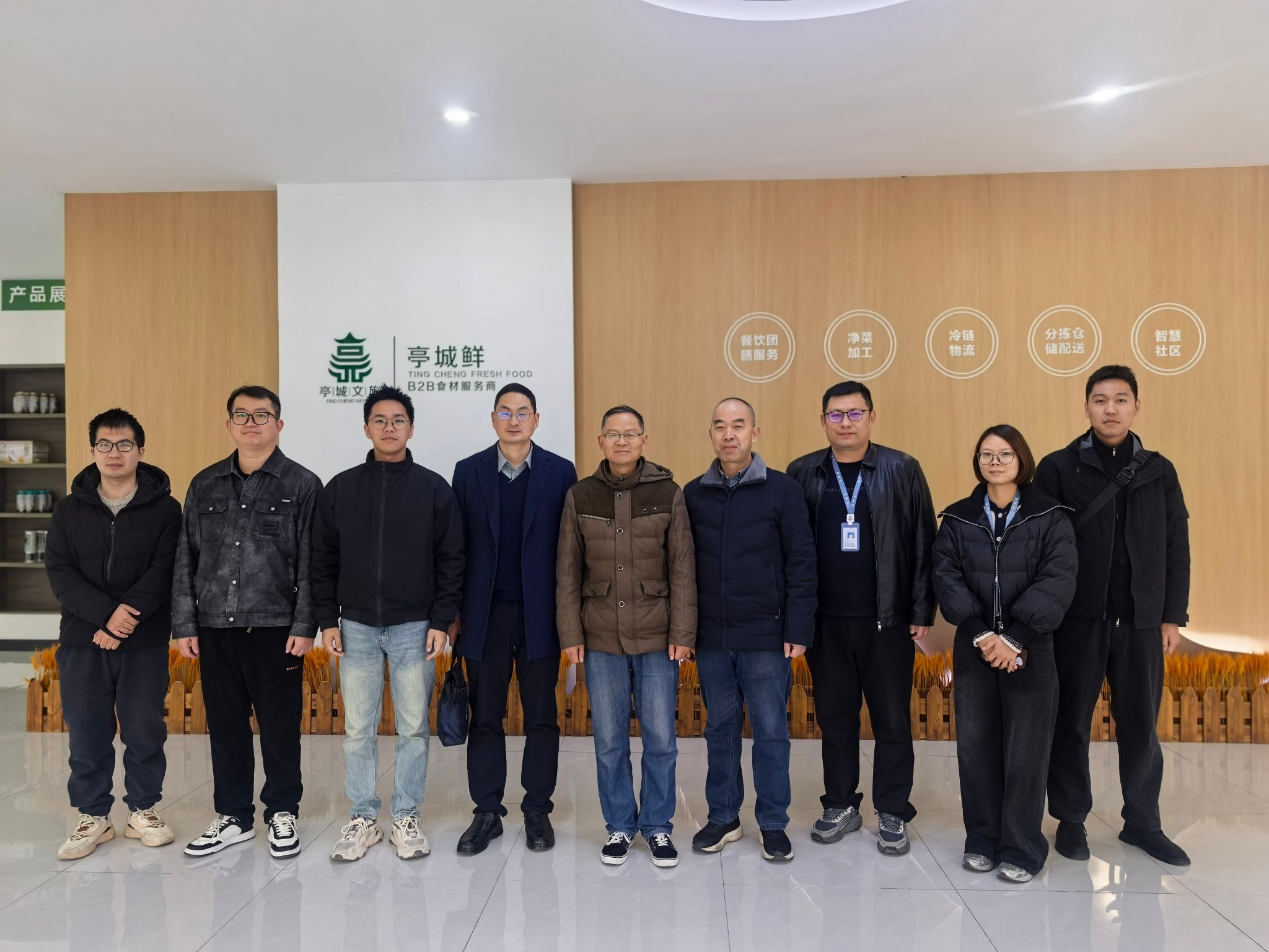 12月12日上午,食品与环境学院院长梁建军、党总支副书记孟飞、食品科学系主任周彬及青年博士陈朴森一行,与滁州中轻合盛科技有限公司总经理助理朱向东等企业代表,共同赴亭城鲜供应链管理有限公司开展实地调研与三方合作洽谈,受到亭城鲜供应链管理有限公司副总经理刘威等人的热情接待。