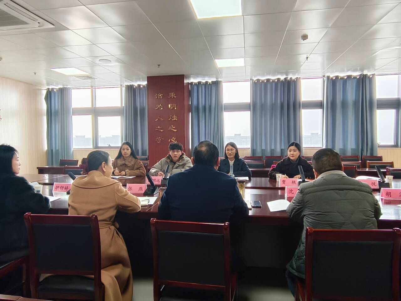 座谈会上,滁州市应用技术学校李平详细介绍了该校“五位四同”三全育人体系、学生管理工作“三线”行为准则和“七彩德育”等特色做法,展示了该校在落实立德树人根本任务、强化学生日常教育管理等方面的积极探索与阶段性成果。张功会介绍了食环学院学生管理工作情况和特色做法,表示此次参观学习收获颇丰,该校的育人理念和实践经验为食环学院学生管理工作提质增效提供了借鉴。贾轶介绍了我校学生管理工作理念和总体思路,双方参会人员还就学生心理健康教育、辅导员(班主任)工作室建设、共青团等具体工作进行了深入交流。双方表示,今后将进一步加强沟通交流,开展经验分享与思想碰撞,互学互促,为学生工作提质增效注入新活力。