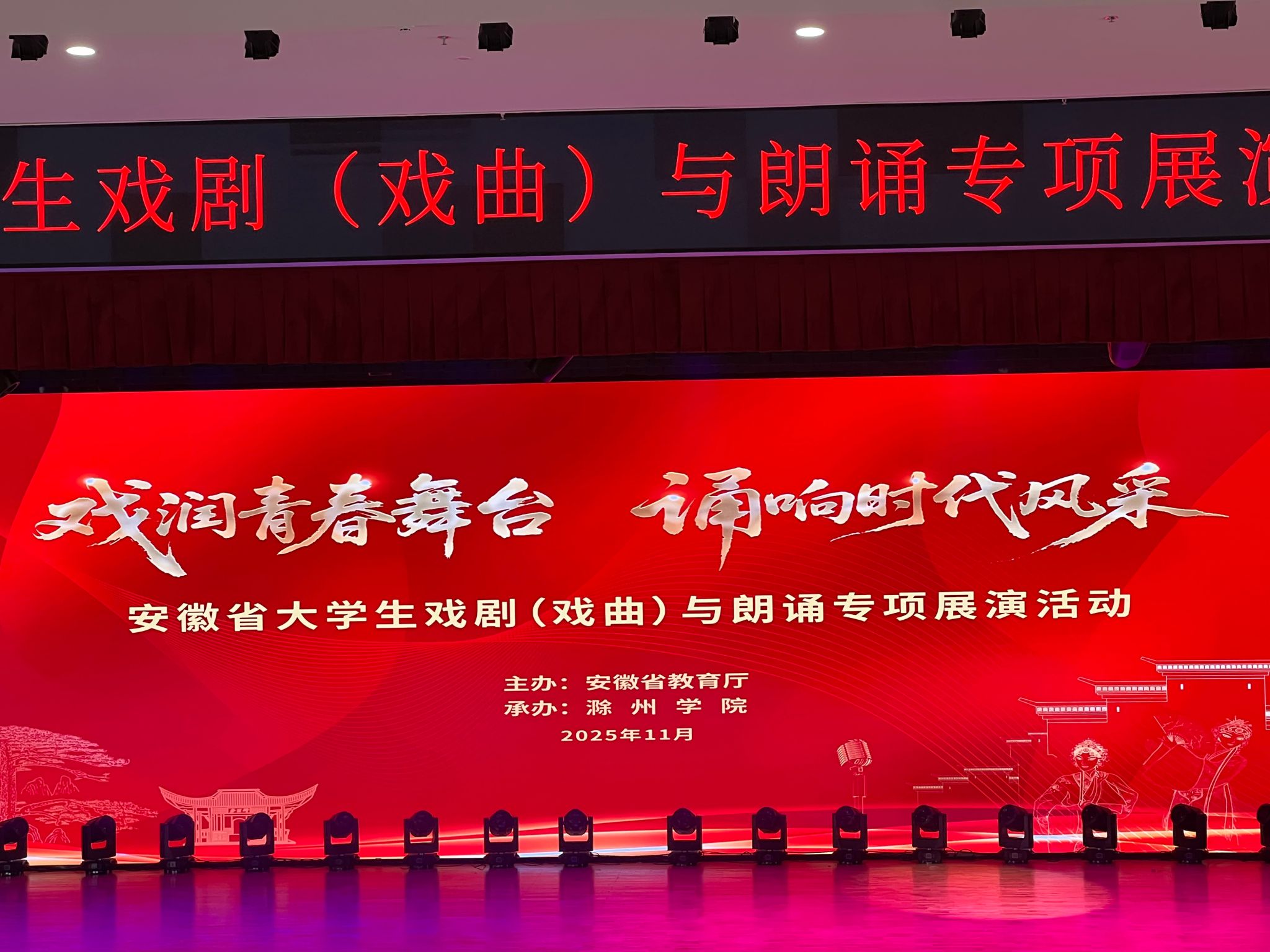 11月21日下午,由安徽省教育厅主办的安徽省大学生戏剧(戏曲)与朗诵专项展演活动在滁州学院隆重举行。我校张帅老师指导的朗诵节目《稻穗与核潜艇的二重奏》凭借精湛的艺术表现力和深刻的思想内涵,在众多参赛作品中脱颖而出,充分展现了滁职学子的青春风采与家国情怀。