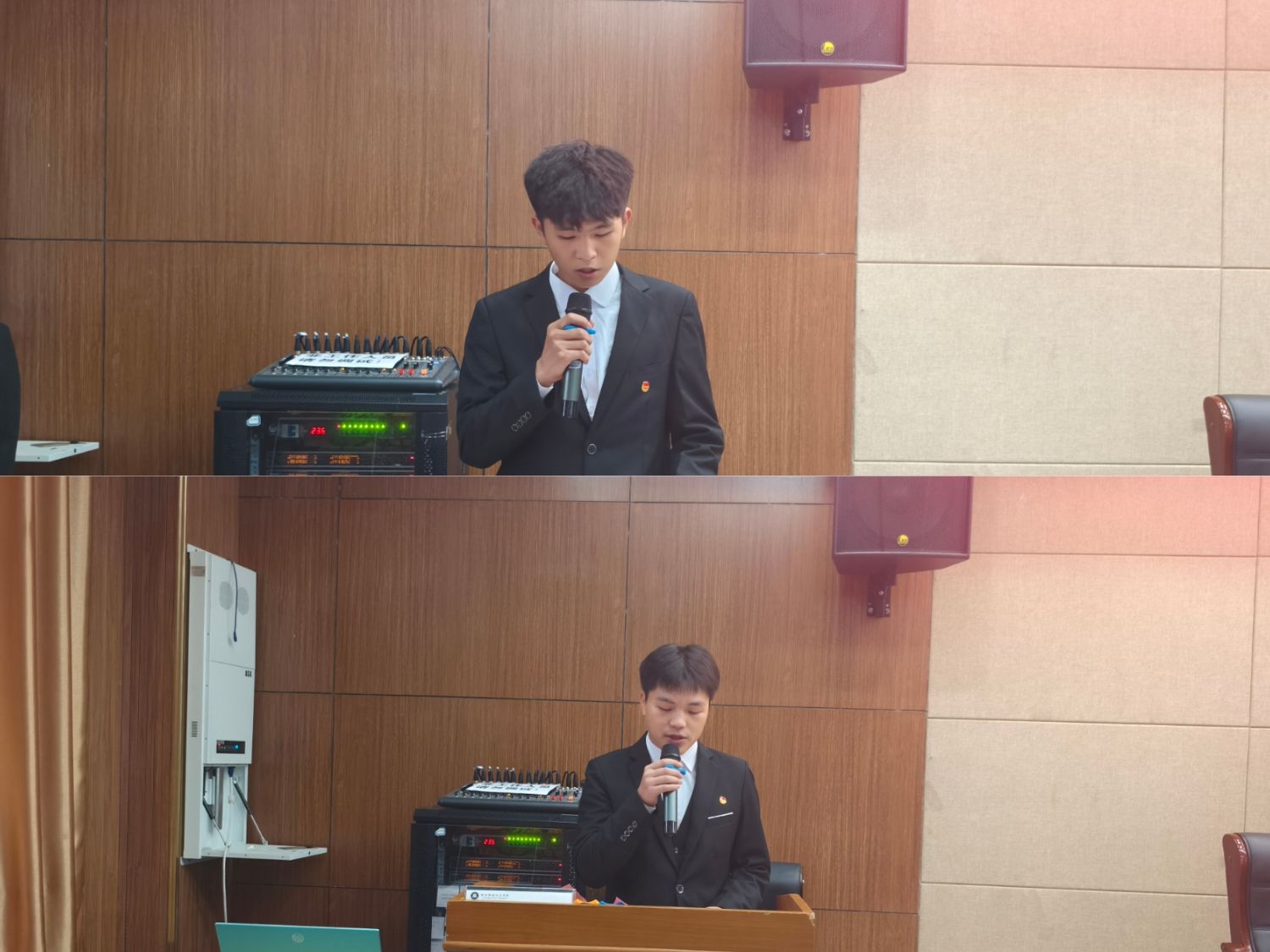第十四届团总支副书记吴其亮和学生会主席周泽涛分别上台发言,结合自身经历,从对团学工作的理解、过往工作成果、未来工作展望等角度展开阐述,赢得现场阵阵掌声。