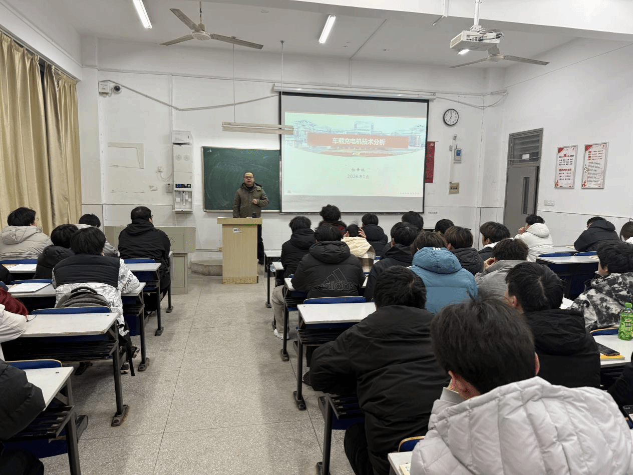 为深化新能源汽车专业学生对车载充电机相关核心知识的理解掌握,2026年1月7日,机械与汽车工程学院于5号致新楼5111教室成功举办“新能源汽车车载充电机技术分析”专题学术讲座。本次讲座由院长杨章林主讲,2025级新能源汽车技术2班全体学生参加。