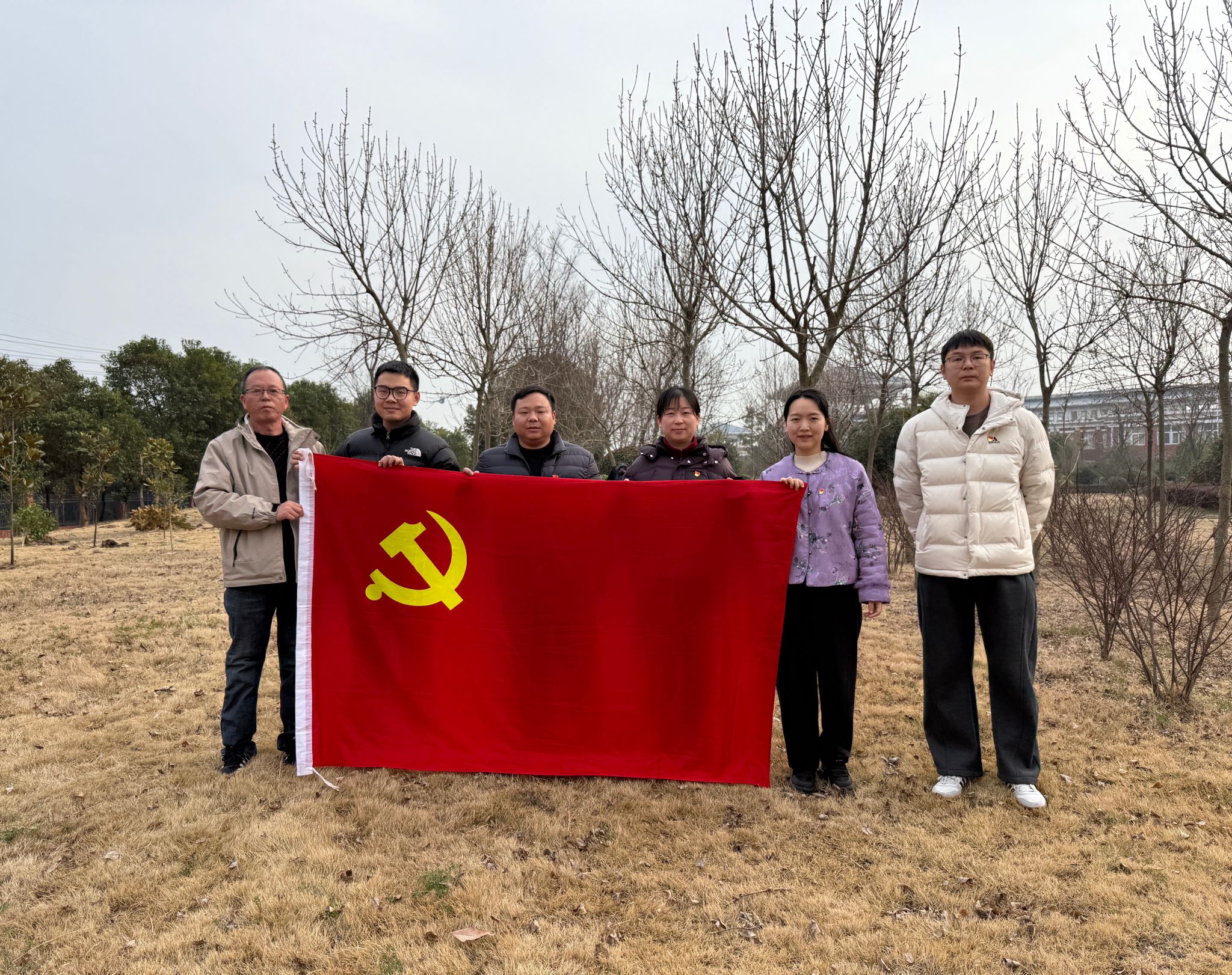 活动现场,党旗迎风飘扬,党员们精神抖擞、热情高涨。按照预先规划的种植区域,大家分工协作、默契配合,严格遵循植树规范,挥锹挖坑、扶苗培土、围堰浇水,每一个环节都细致认真。经过一番辛勤劳作,一株株树苗顺利扎根,为校园增添了勃勃生机与盎然绿意。