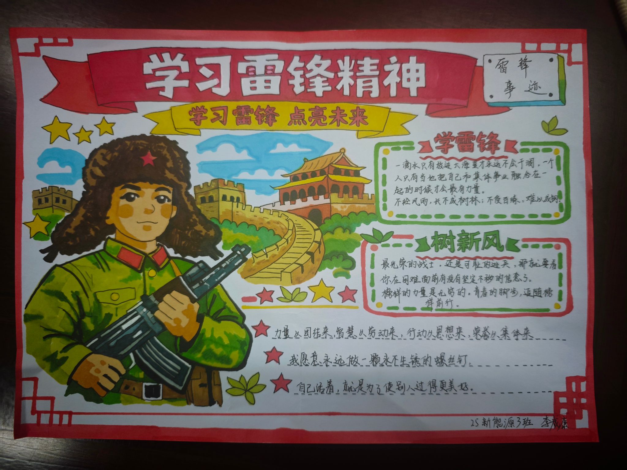 活动期间,同学们踊跃参与,围绕雷锋生平事迹、雷锋日记摘录、新时代雷锋精神内涵等主题精心创作。一幅幅作品主题鲜明、版面精美、内容丰富:有的用细腻画笔描绘雷锋助人为乐的感人瞬间,有的以工整书法抄录雷锋名言警句,还有的将工匠精神与奉献精神相结合,展现了工科生的独特视角与人文情怀。创作过程本身也成为同学们学习雷锋、感悟奉献的生动课堂。这些作品不仅展现了同学们扎实的创作功底,更传递出对雷锋精神的深刻理解与由衷敬意。