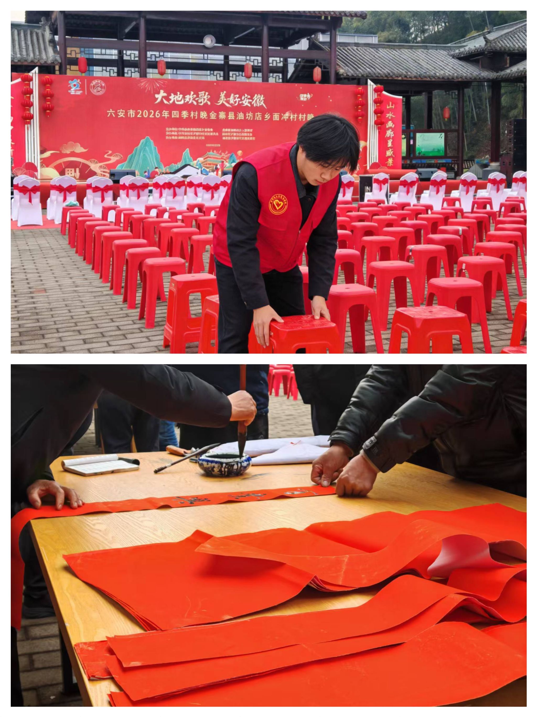 此外,部分学子还参与了六安市金寨县村晚筹备、写春联送福字等文化惠民活动,为家乡文化振兴注入青春活力;还有学子走进本地 “小菜园” 餐饮门店开展兼职锻炼,在快节奏的服务工作中培养责任意识与实操能力,深刻体会劳动的价值与不易。实践过程中,学子们克服实操生疏、任务繁琐等困难,从初入岗位的拘谨到独当一面的从容,沟通协调、问题解决等综合能力得到全面提升,不少学子结合实践提出的合理化建议,还得到了实践单位的认可与采纳。