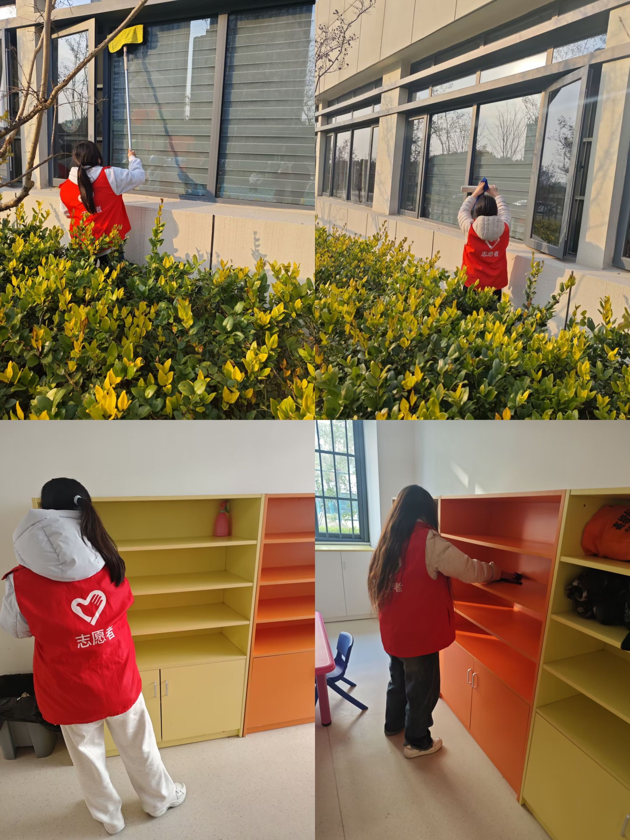 当天下午,志愿者提前抵达并迅速明确分工,手持清扫工具细致清理场地垃圾,认真擦拭桌椅、玩具架等设施,不放过任何卫生死角。经过齐心协作,活动场地窗明几净、物品摆放整齐,面貌焕然一新。