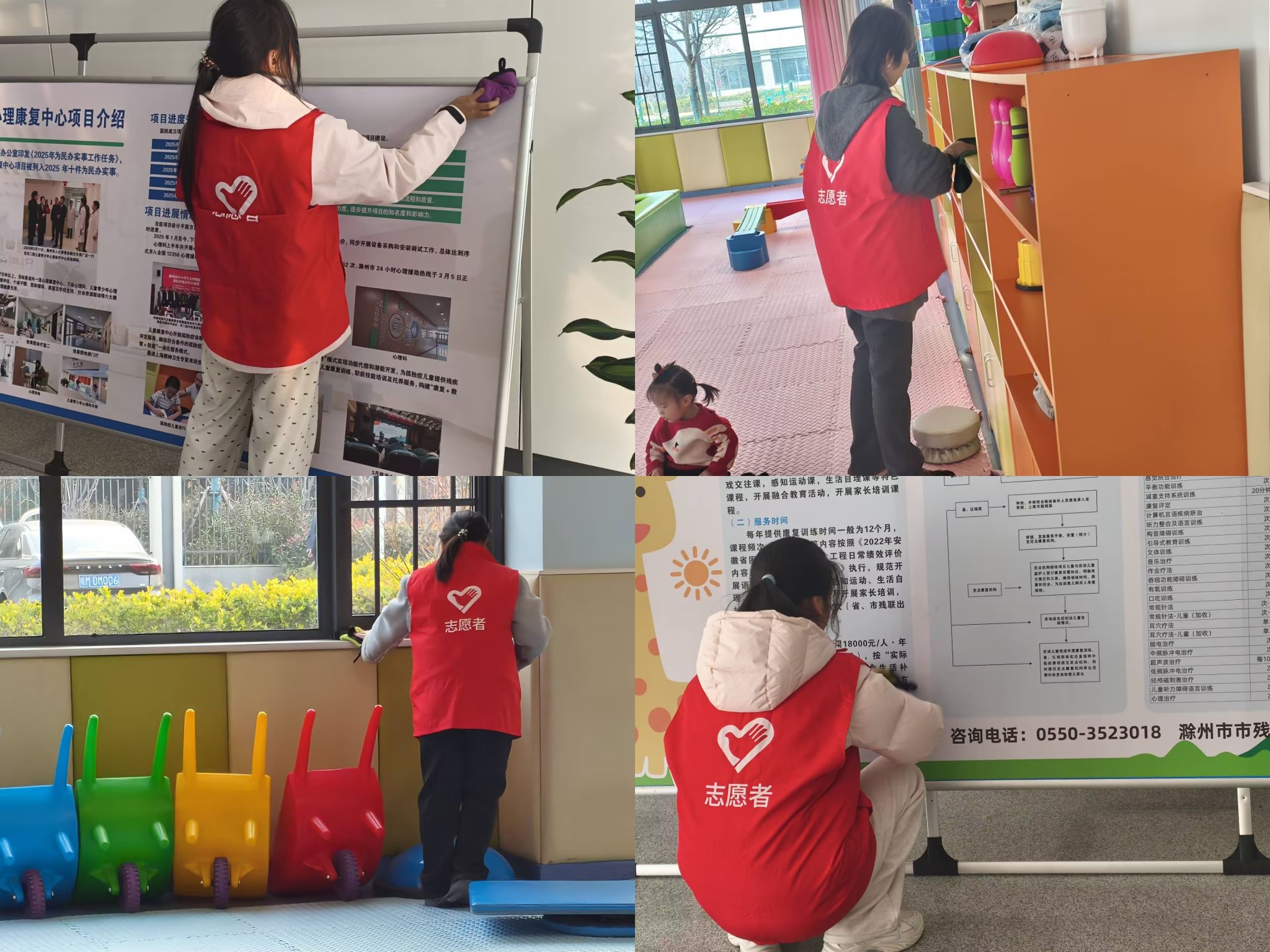到达活动现场后,志愿者们迅速进入状态,有条不紊地投入清洁工作。他们手持工具清扫院区各个角落,拖净地面,仔细擦拭窗户,让每一处都窗明几净;把活动室的储物柜、游乐器材逐一擦净,不留一处卫生死角,将孩子们的玩具收纳箱整理得井井有条。焕然一新的院区与活动室里,满溢着志愿者们的爱心与温情。