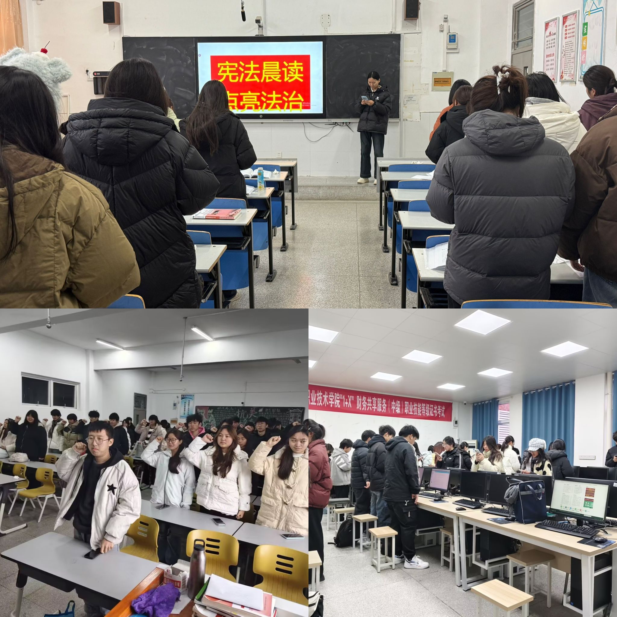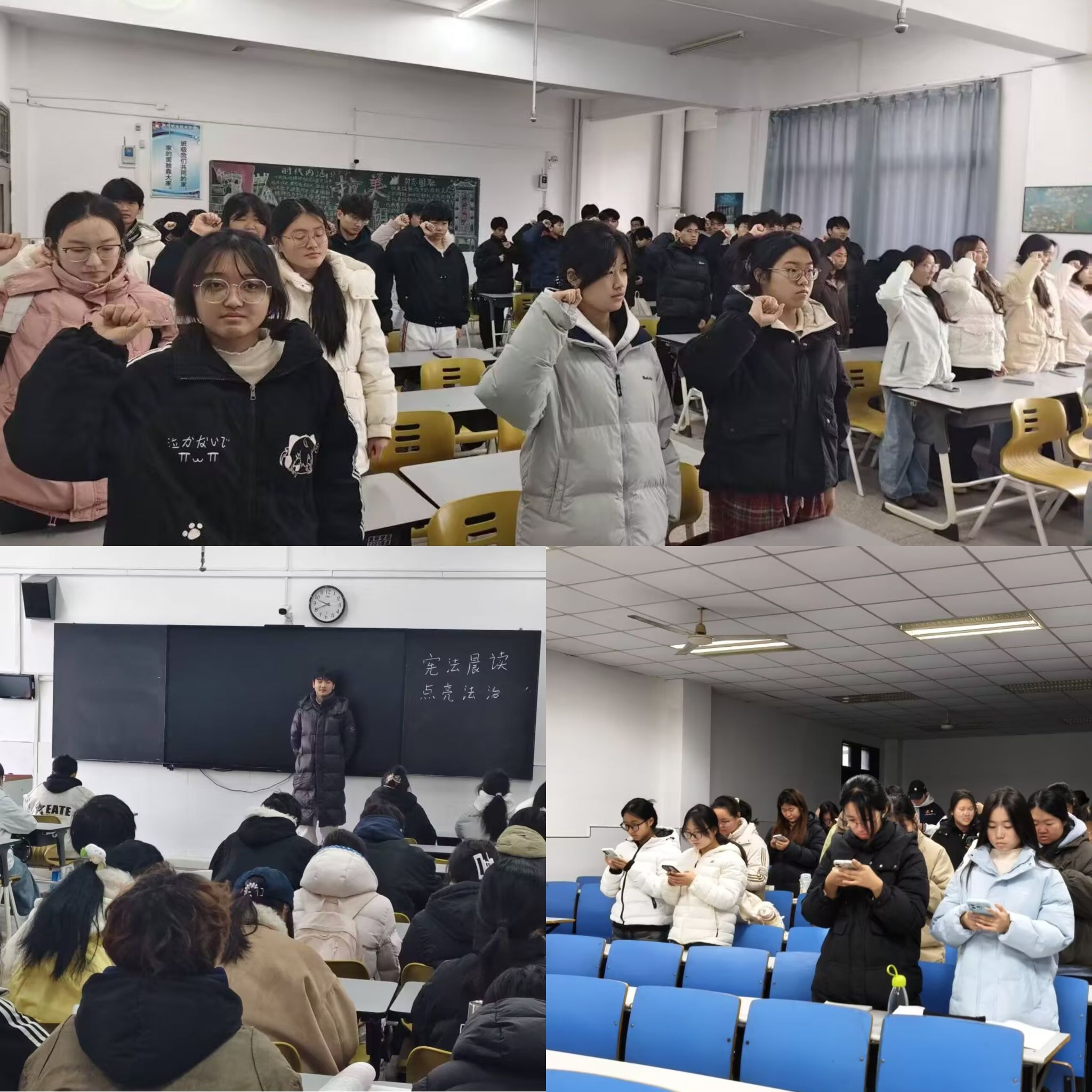 学院组织大一、大二各班级学生积极参与第十届全国学生“学宪法 讲宪法”网络学习活动,通过丰富的线上课程与知识解读,助力同学们精准把握宪法精神实质;同时,由学生会学习实践部牵头组织开展宪法晨读活动,全体学生齐声诵读宪法核心条文,整齐洪亮的书声萦绕在每一间教室,在庄重热烈的氛围里,深切体会宪法的崇高内涵与精神力量。
