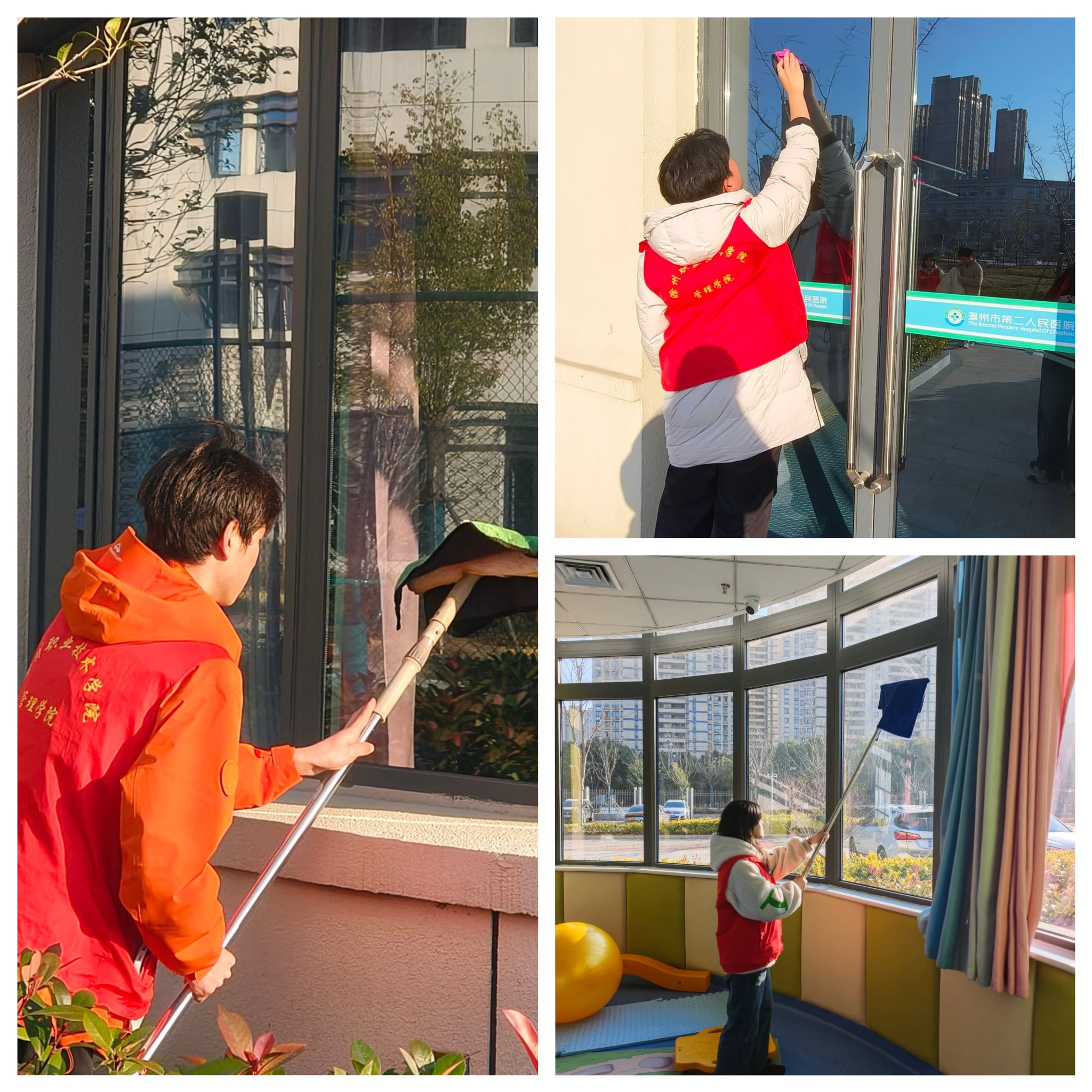 活动当日下午,志愿者们在医务人员的引导下有序开展服务工作,合理分组、分工协作,以高效配合推进各项服务。一组志愿者聚焦儿童活动室、训练区等核心区域,逐一对桌椅、门窗及室内墙壁进行细致擦拭,认真分类规整各类活动器材,用心为孩子们打造整洁有序的活动空间。另一组志愿者则全身心投入对孩子们的陪伴当中,始终以耐心态度与温和笑容与小朋友互动交流,用真诚地关怀传递温暖与善意,让孩子们在陪伴中感受到满满的关爱。