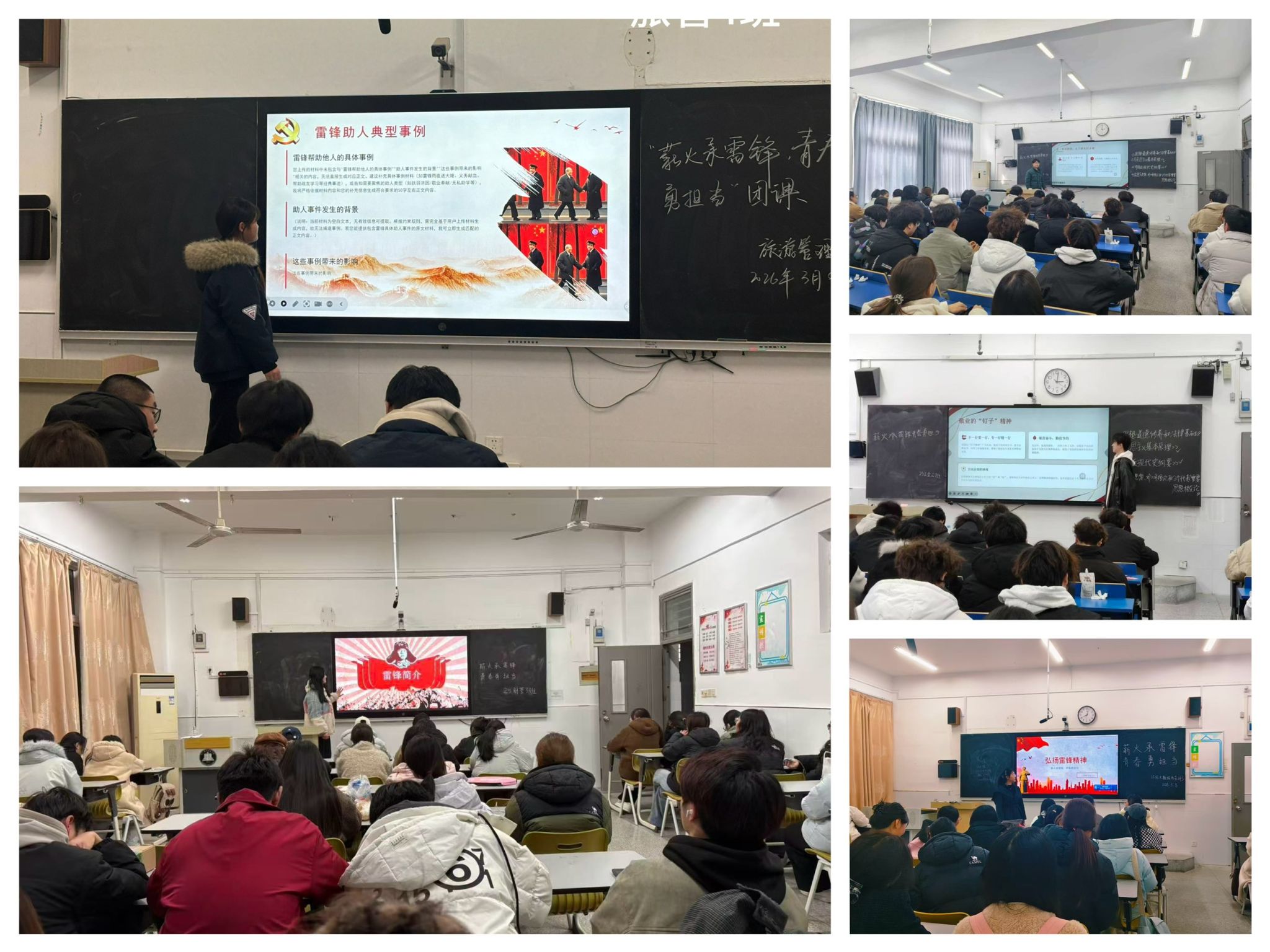 为深入学习和弘扬雷锋精神,引导广大青年学生在新时代践行奉献、友爱、互助、进步的志愿精神,管理学院团总支于2026年3月5日在管理学院各班级开展“薪火承雷锋,青春勇担当”主题团课活动。管理学院各年级团员青年积极参加。