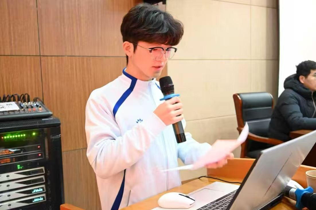 在代表发言环节中,优秀运动员代表卢松分享了备赛与参赛的心路历程,表达了对学院培养、老师指导和队友支持的感谢,表示将继续发扬体育精神,在学习和生活中再创佳绩。
