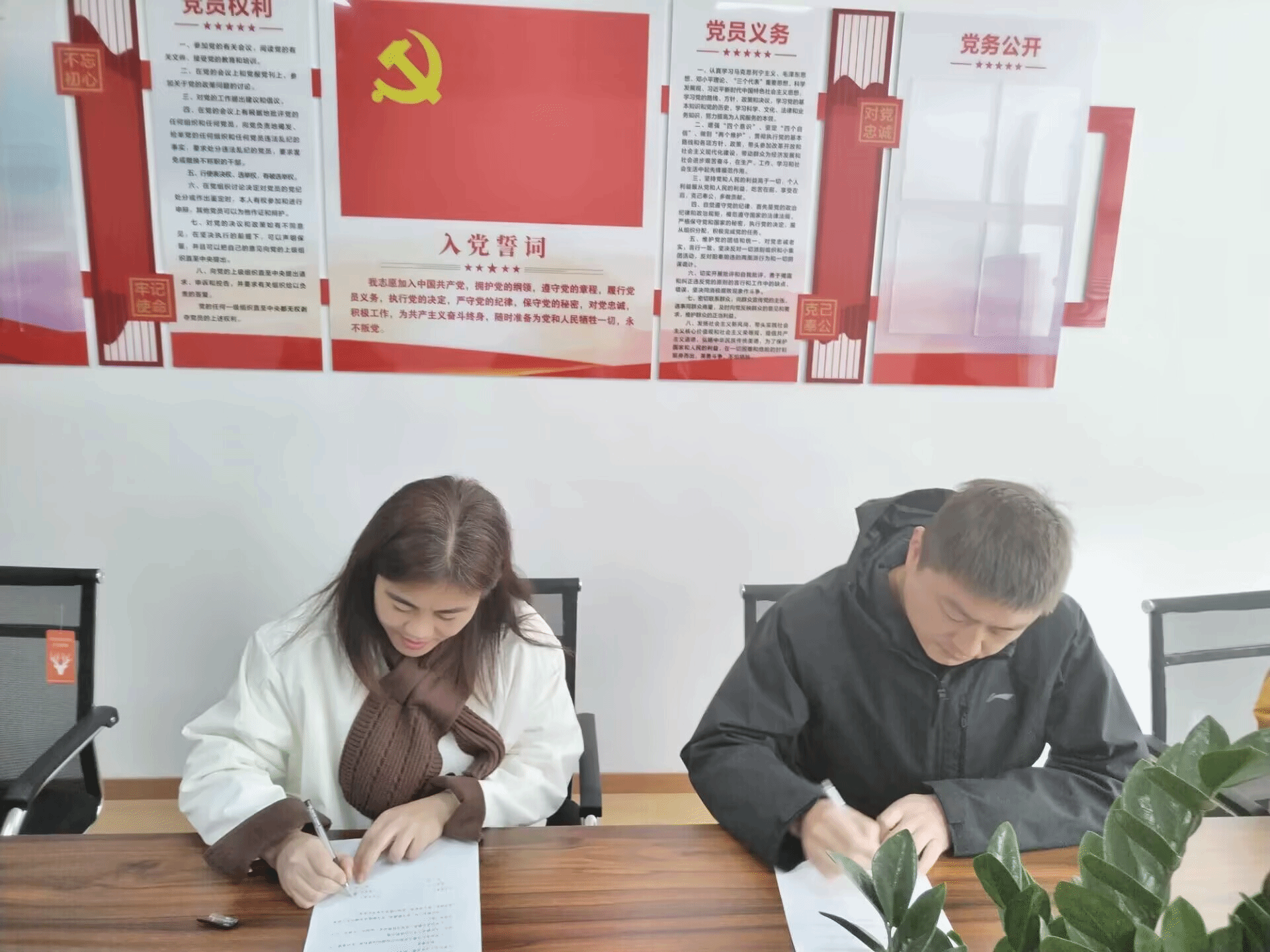 在全体参会人员的共同见证下,双方党支部负责人共同签署《党建联建协议书》。根据协议,双方将围绕三大重点开展合作:一是党建共建强根基,定期联合开展主题党日、党纪学习教育、廉洁文化建设等活动,共享党建经验,筑牢基层党组织战斗堡垒;二是产教融合育匠才,共建实践教学基地、“双师型” 师资培养平台,协助企业开展技术改造研发,定向培养适应企业需求的智能制造专业人才;三是协同创新促升级,组建以党员为核心的技术攻关团队,聚焦智能装备优化、生产工艺改进等关键课题,推动科研成果转化应用,助力产业转型升级。