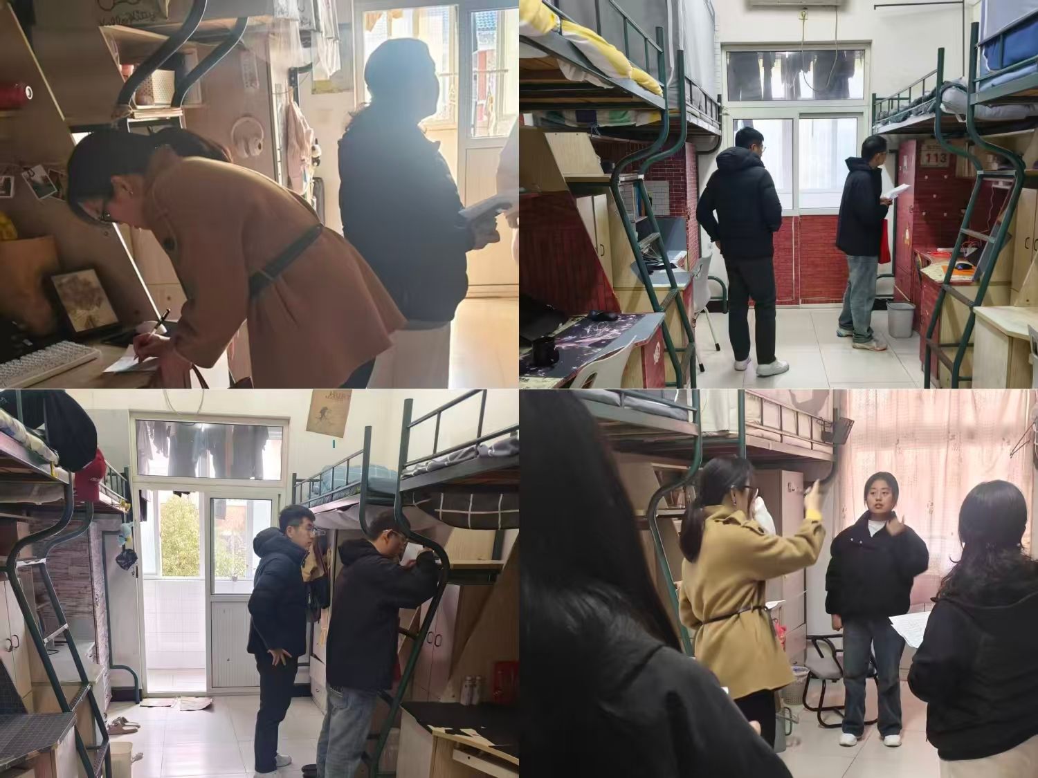 在检查过程中,评选小组重点关注内务整理的精细化程度,对衣物收纳、桌面整洁度、卫生死角、大功率电器等方面进行细致查看,对部分宿舍温馨雅致的装饰布局、互帮互助的相处氛围给予肯定。检查中,辅导员们与同学们亲切交流,耐心指出宿舍存在的问题并给出整改建议,倾听大家在住宿生活中的需求与困惑,引导同学们树立“宿舍是家、共建共享”的责任意识。经过严格筛选与综合评议,最终确定20间标兵宿舍代表学院参与校级评比。