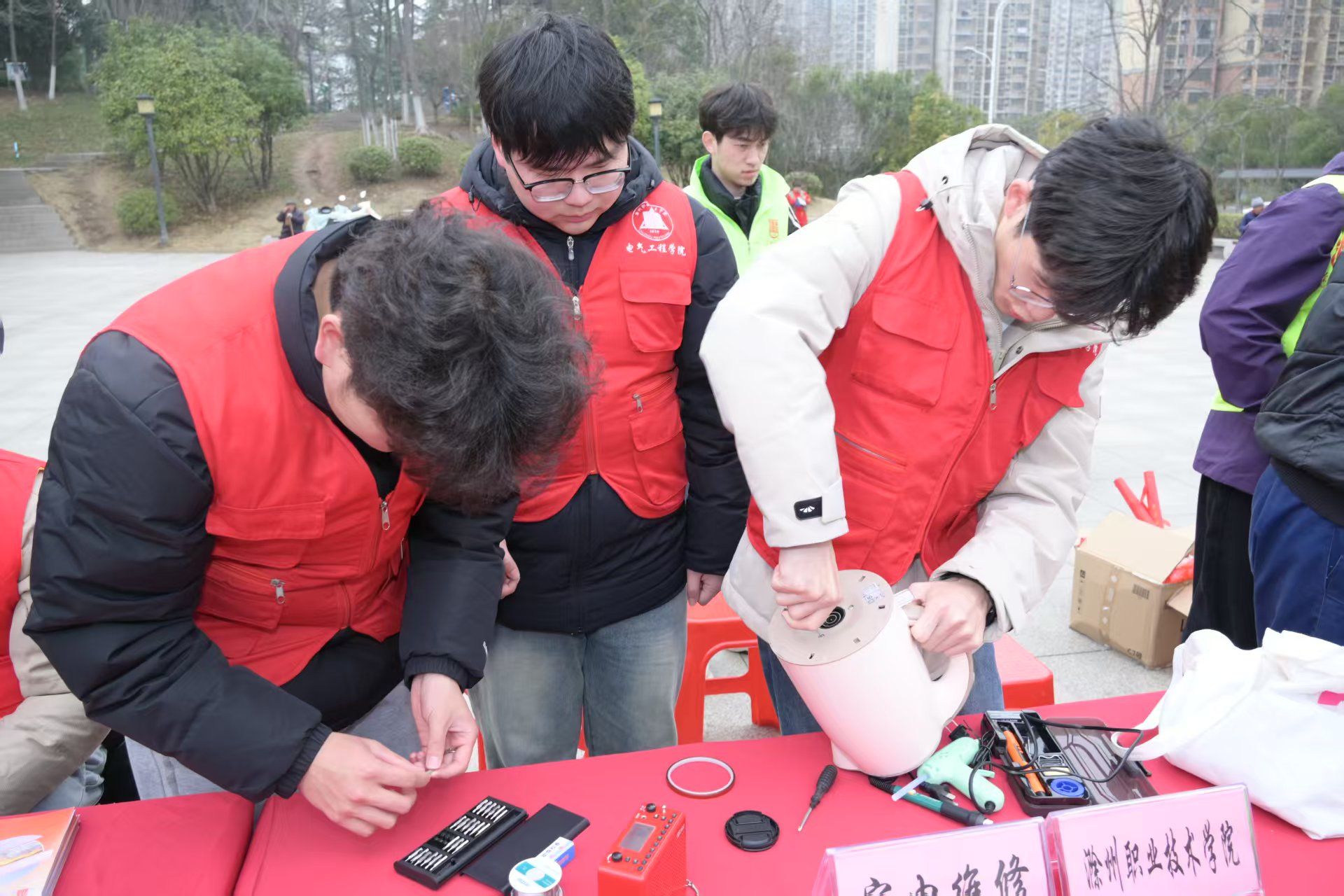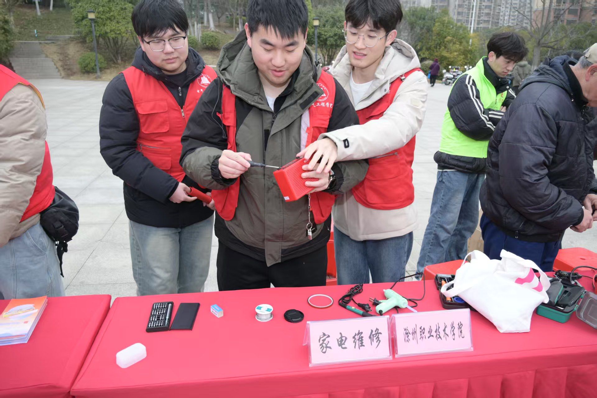 为弘扬新时代雷锋精神,充分发挥职业院校专业技能服务社会的功能,3月5日上午,电气工程学院组织师生志愿者走进龙池社区,参加滁州市举办的学雷锋、做志愿、共同奋进“十五五”——滁州市“3·5”学雷锋纪念日主题志愿服务活动。学生们在社区广场“摆摊设点”,用所学专业技术为居民免费维修小家电,以实际行动书写新时代的雷锋故事。