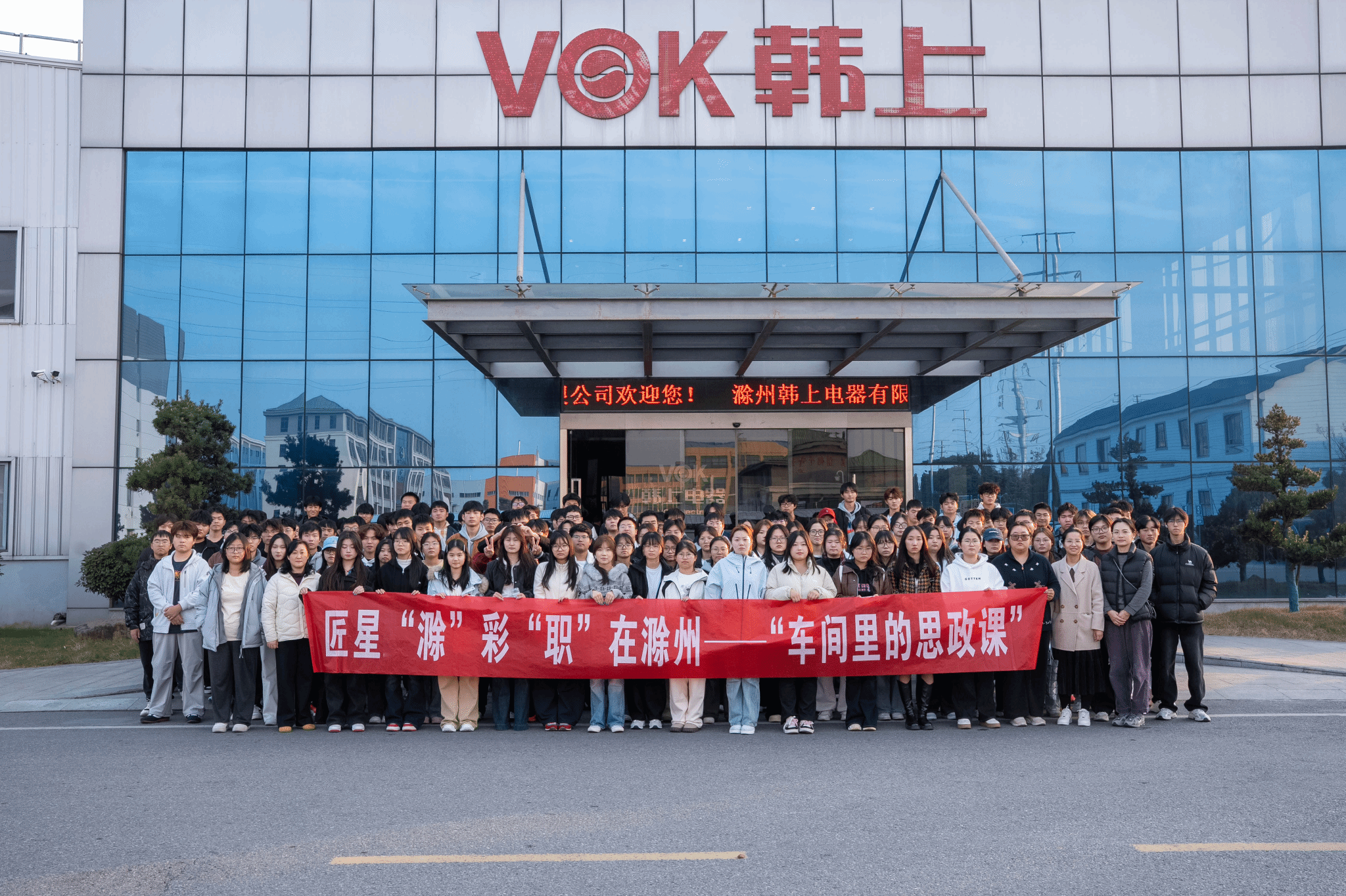 为凸显职业院校教育特色,让思政课更具“职教味”,11月23日,马克思主义学院组织2025级应用电子技术、工业设计专业150名学生走出传统课堂,将“星匠‘滁’彩‘职’在滁州”主题思政课搬进安徽光智科技有限公司与韩上电器的生产车间。