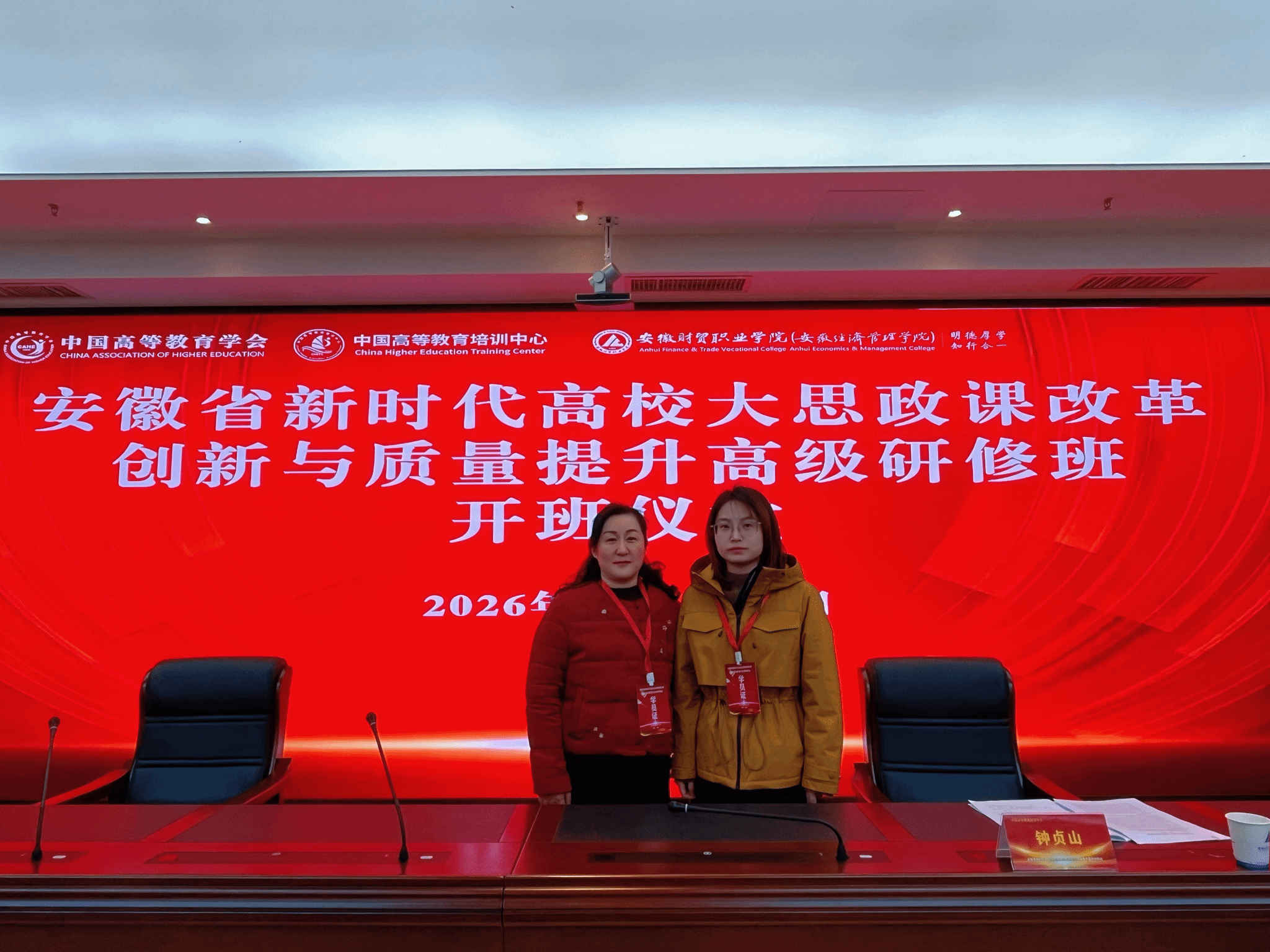 为深入学习贯彻习近平新时代中国特色社会主义思想、党的二十大和二十届历次全会精神,全面落实《关于新时代加强和改进思想政治工作的意见》要求,推动“大思政课”建设走深走实,深刻把握新时代教学改革新要求、探索AI技术与课程思政深度融合新路径,2026年1月10日至11日,由中国高等教育培训中心主办,安徽财贸职业学院协办的“安徽省新时代高校大思政课改革创新与质量提升高级研修班”在安徽省合肥市成功举办。我校马克思主义学院副院长张家莉、青年教师陈善慈参会学习。