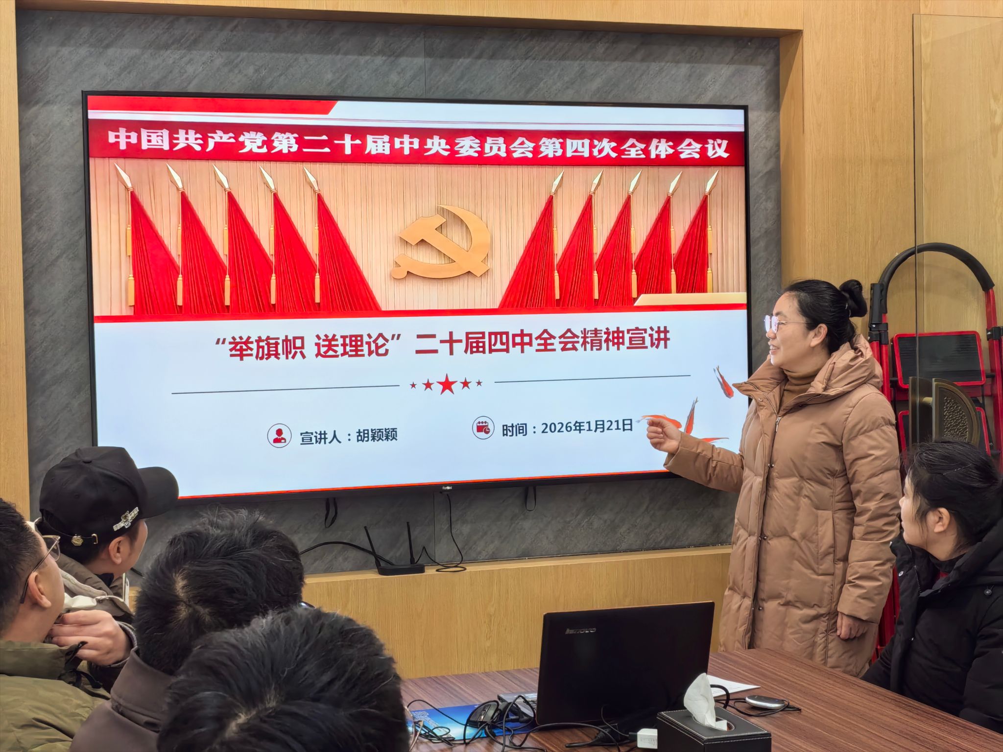 为推动党的二十届四中全会精神深入企业一线、浸润职工心田,1月21日,思想政治教育教研室党支部胡颖颖老师走进安徽中格建设有限公司,开展了一场聚焦全会精神的专题宣讲。