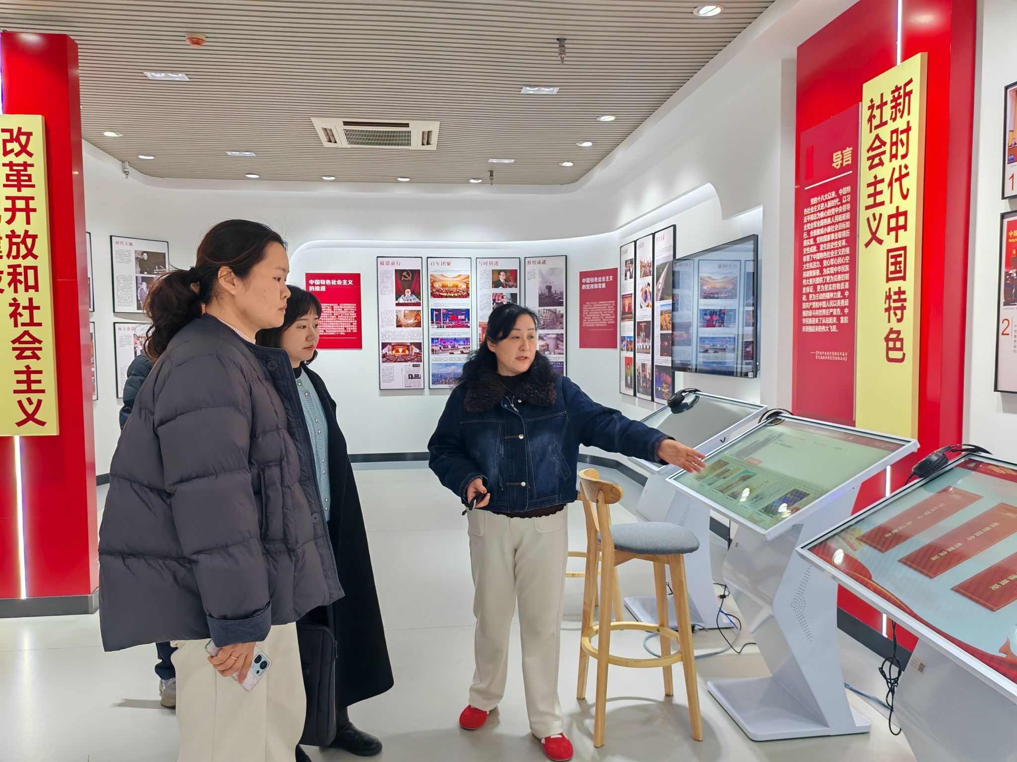 况敬文、徐迟一行首先实地参观了“大思政课”数字研学中心。马克思主义学院副院长张家莉围绕中心建设理念、创新教学模式、特色育人成果等方面进行了详细介绍。来宾对我校以数字技术赋能思政课改革创新、构建立体化、沉浸式思政育人阵地的实践探索给予充分肯定和高度评价。